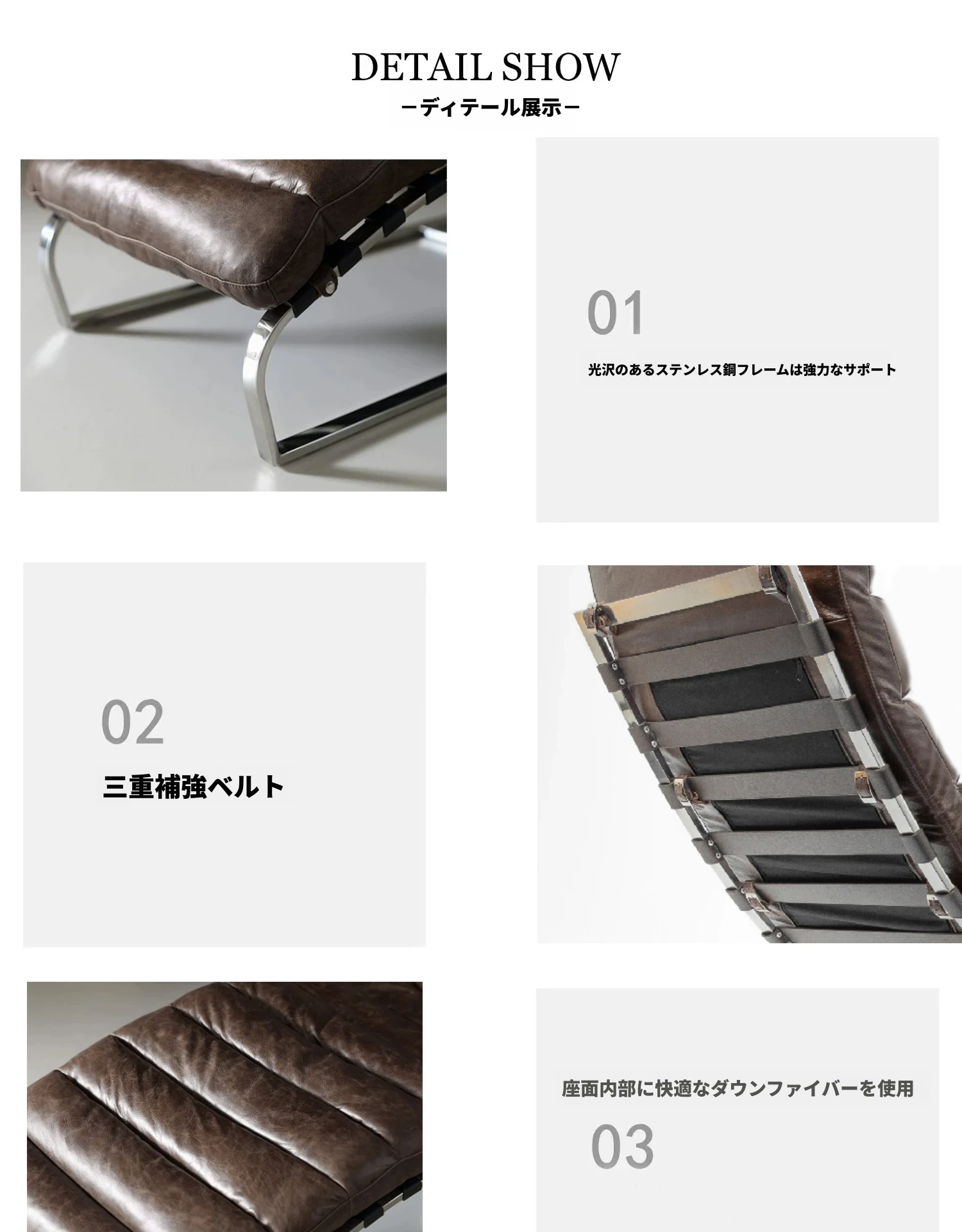オビエド・シェーズロング 中世風コルビジェ 本革製リクライニングチェア 北欧スタイルのリラックスチェアで、優雅な午後のひとときを楽しめます!