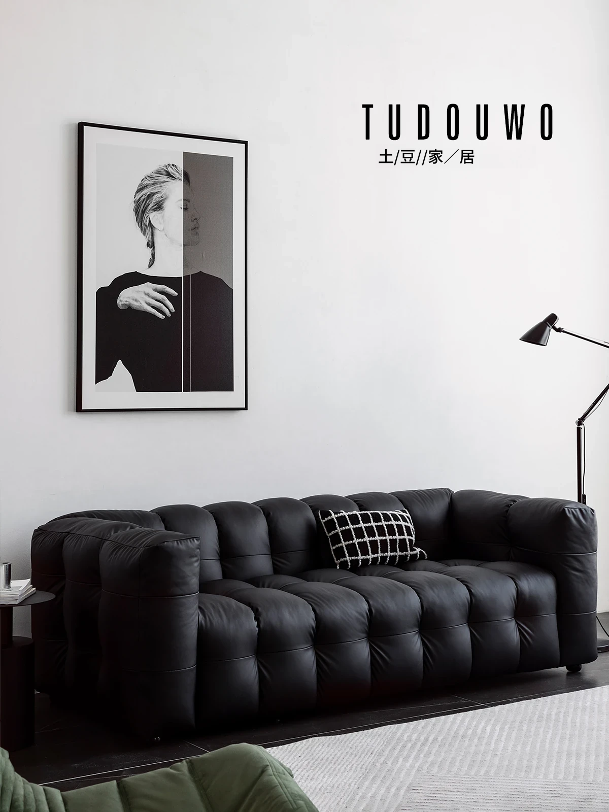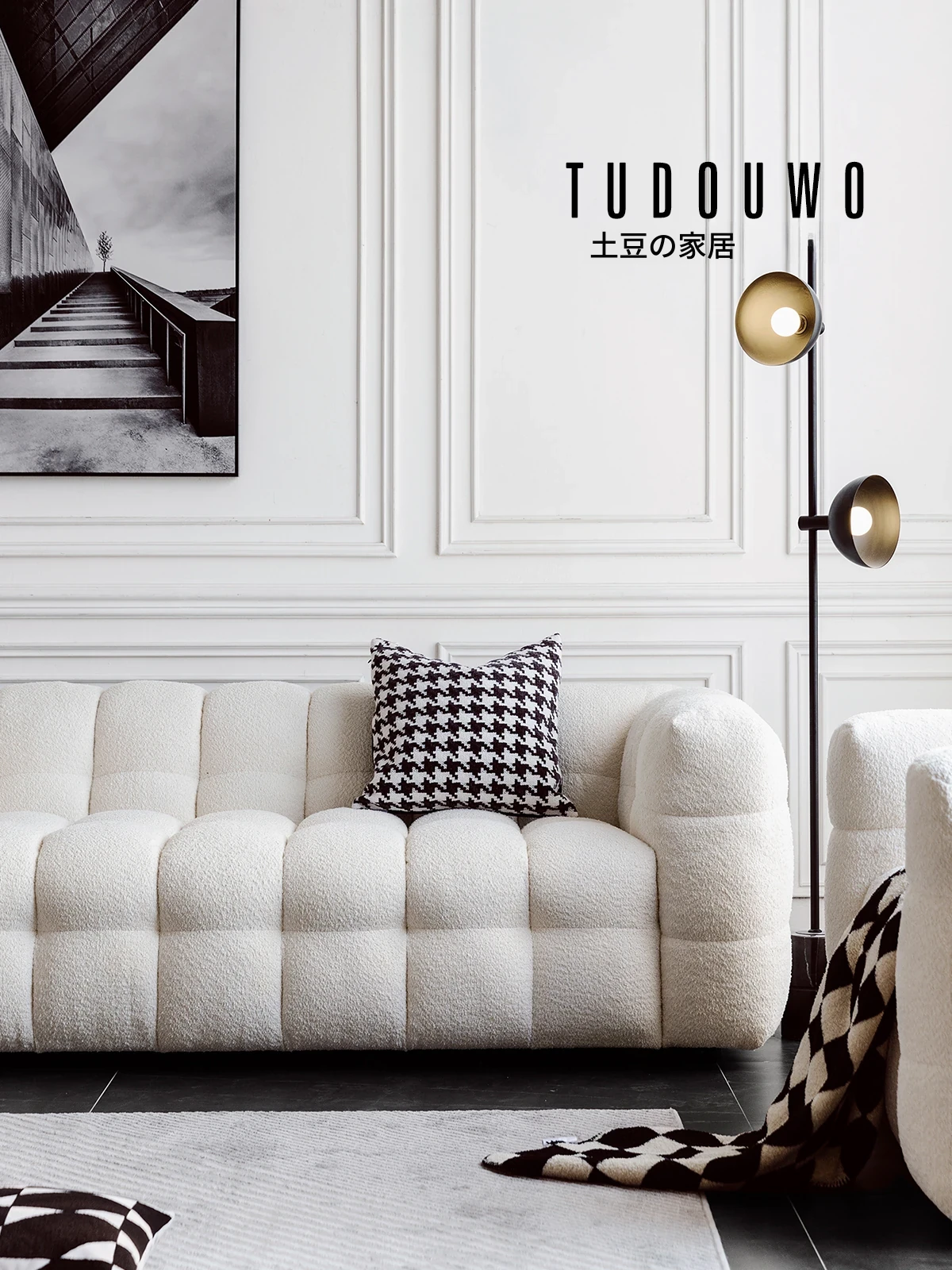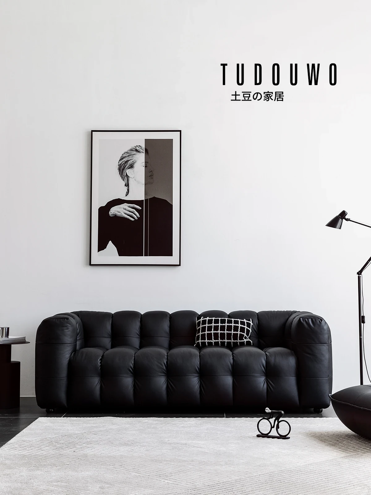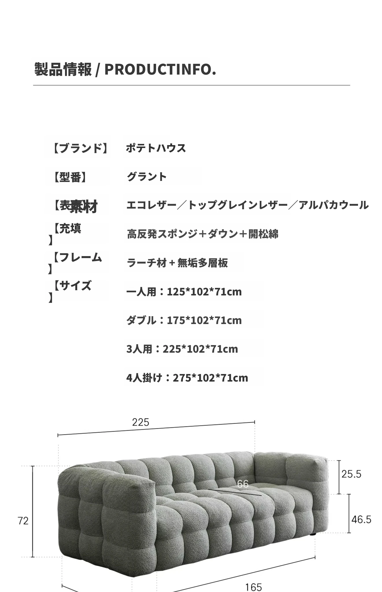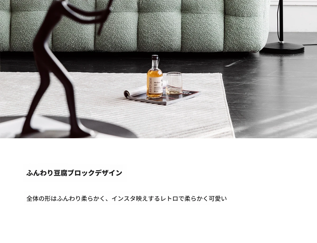 ポテトハウス クリーミーホワイトBOBAファブリック三人用ソファ シンプルな豆腐ブロックデザインのブラックレザー一人用ソファで、スタイリッシュで快適な空間を演出!