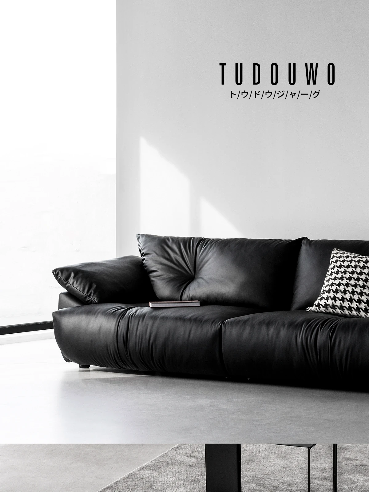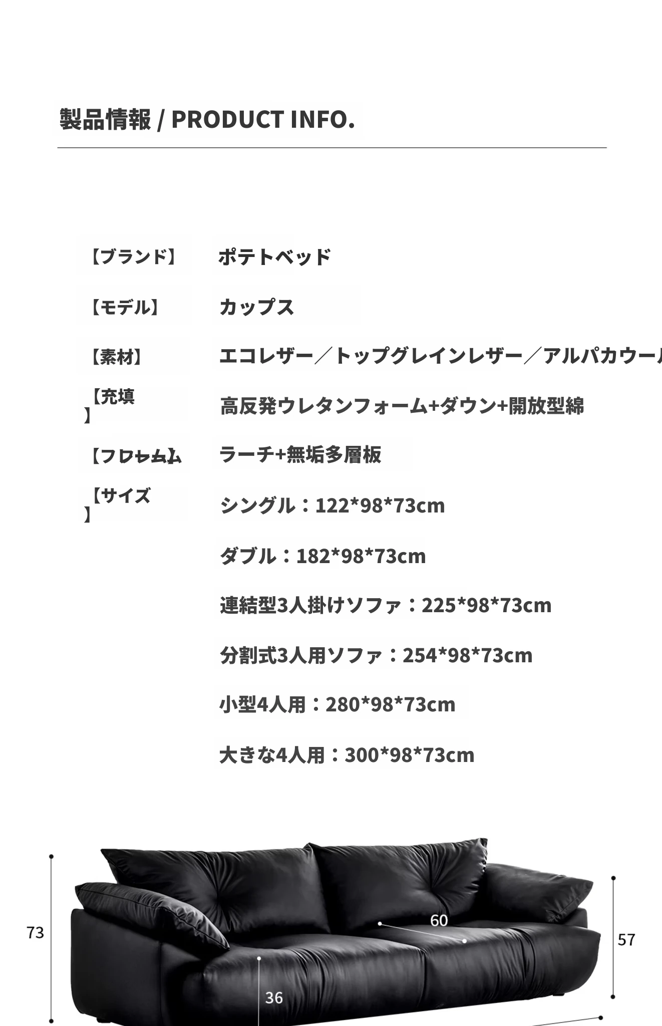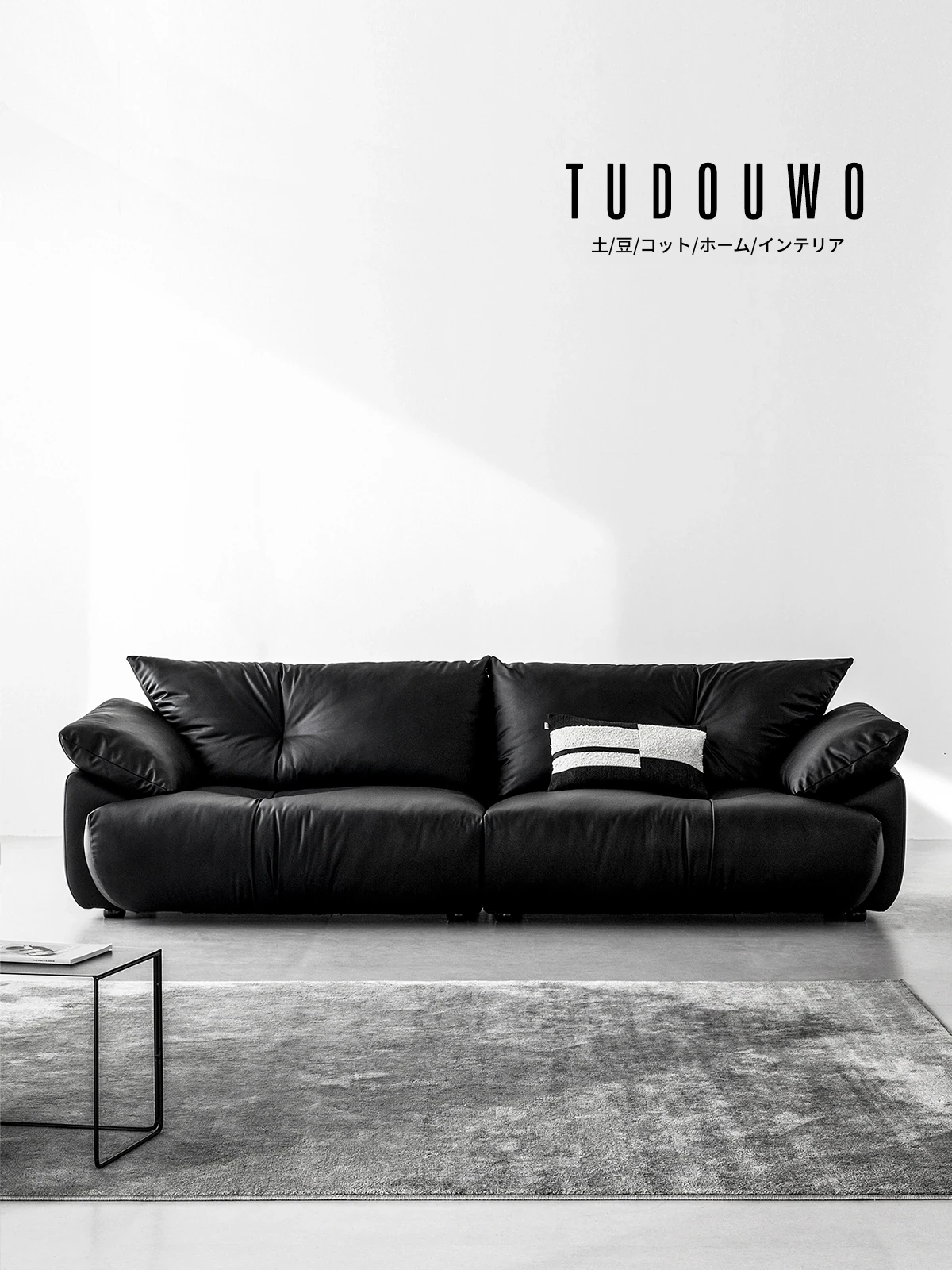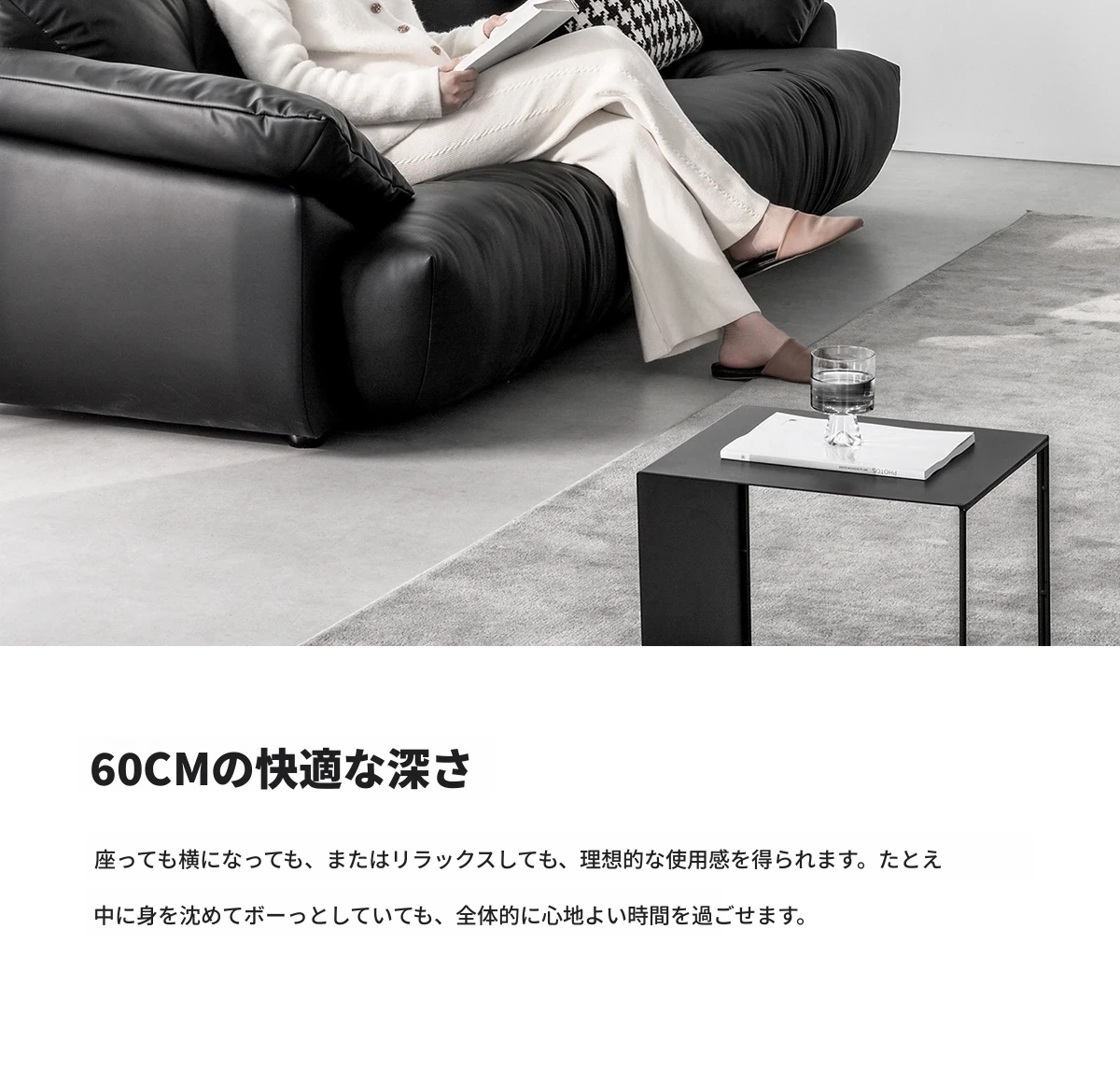 土豆窝 デザイナーズ フロアタイプ 直排ソファー ブラックレザー リラックス感満載 3人掛け&4人掛け 本革ソファー