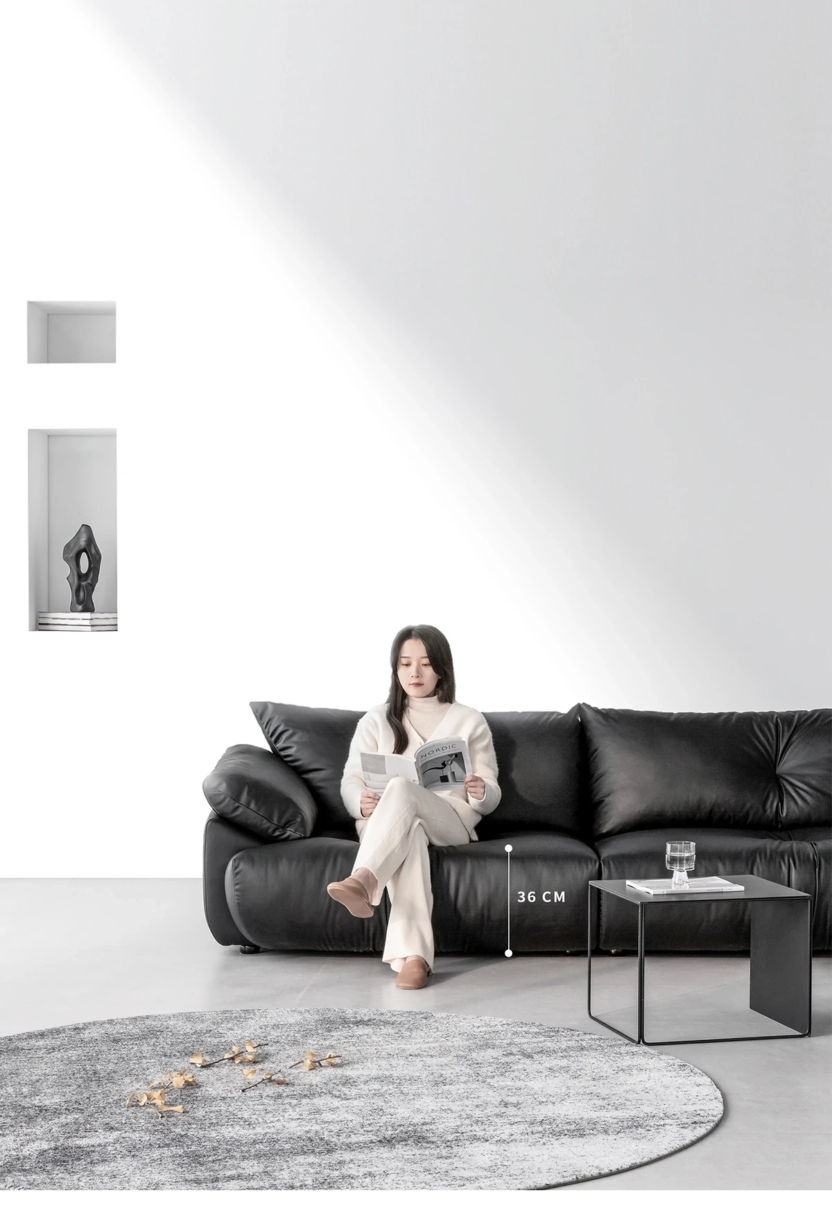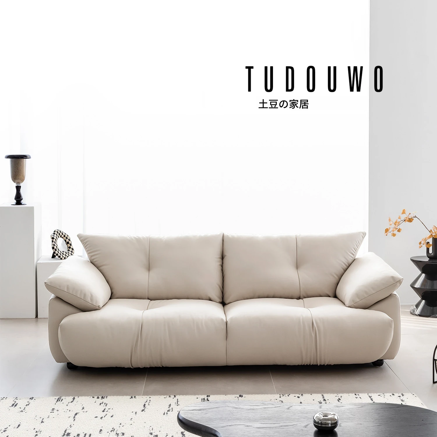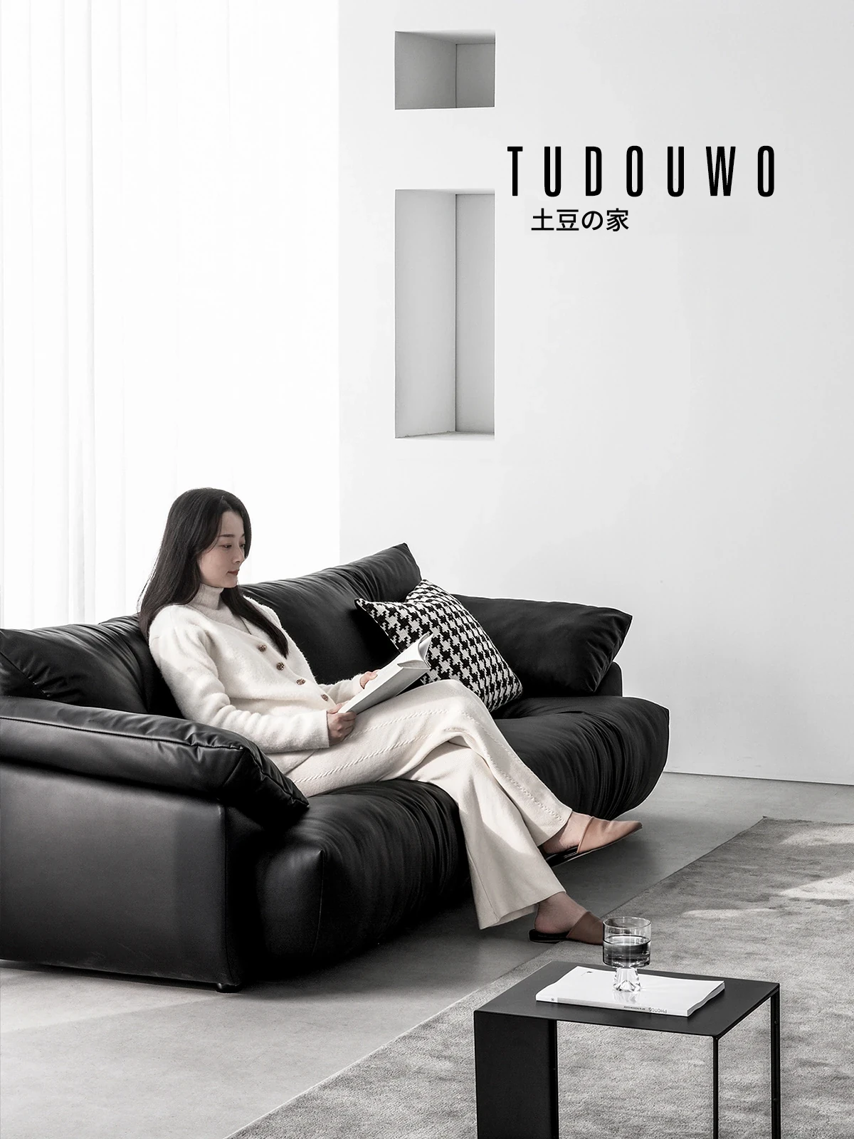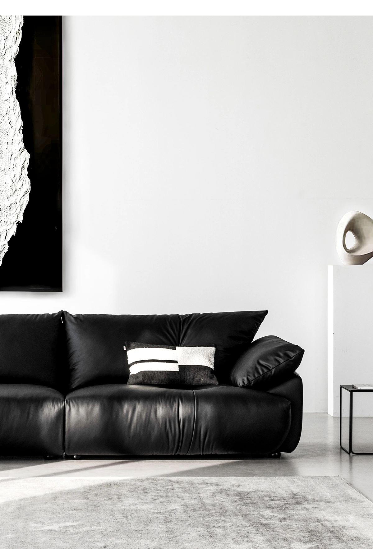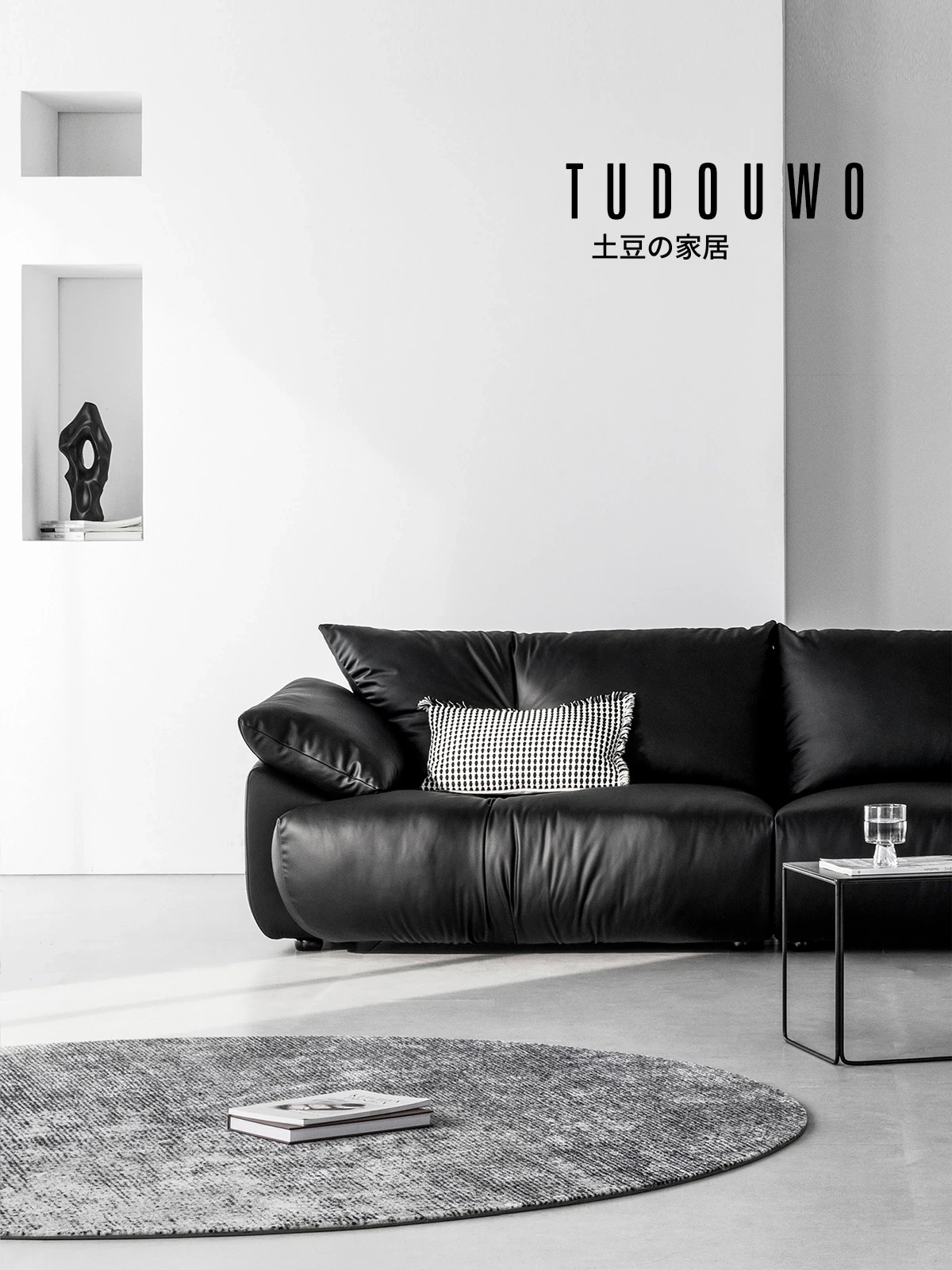 土豆窝 デザイナーズ フロアタイプ 直排ソファー ブラックレザー リラックス感満載 3人掛け&4人掛け 本革ソファー