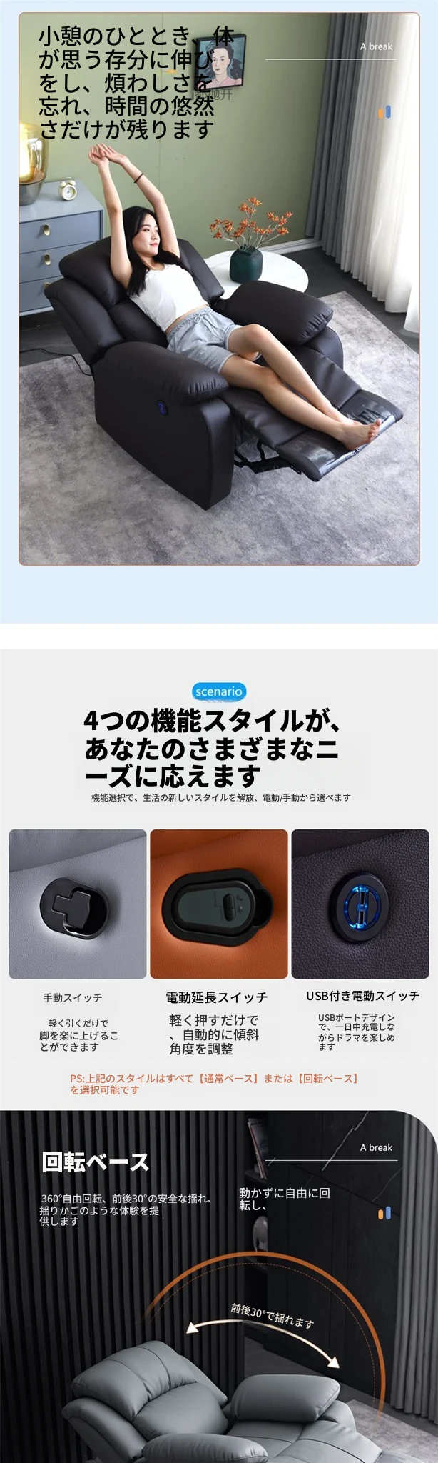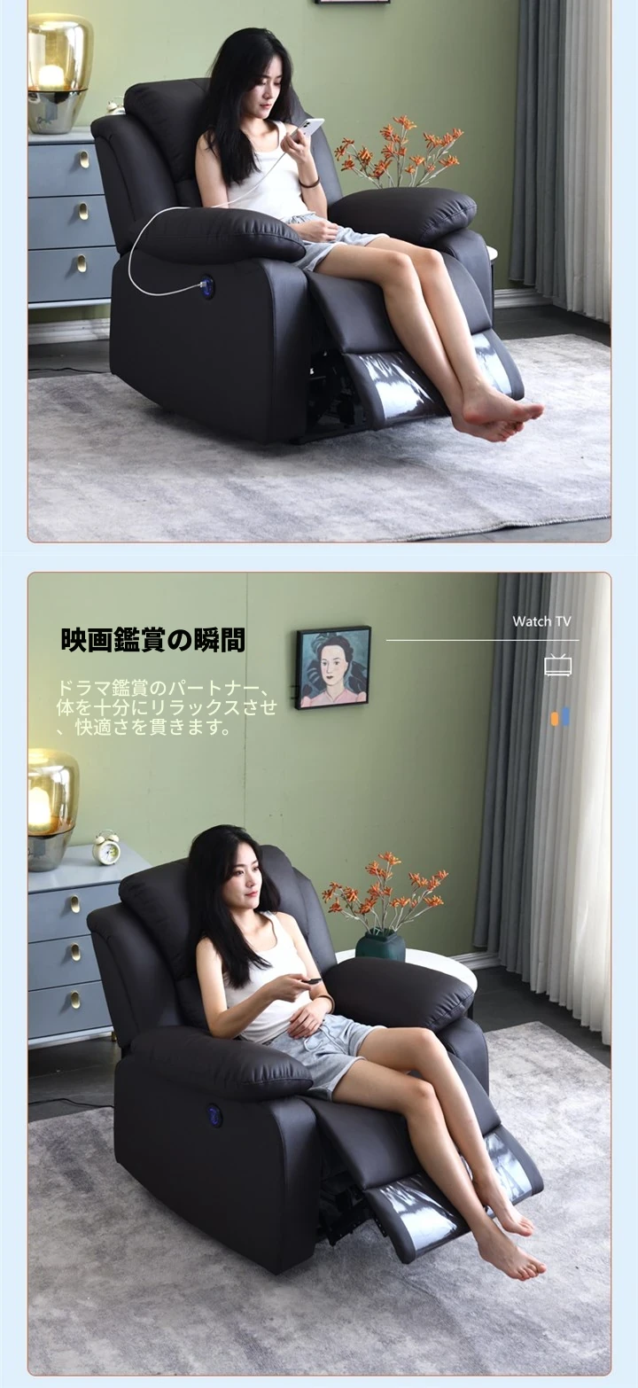 人気のエグゼクティブ宇宙リクライニングソファ!シングル電動機能付きで、家庭映画館やネイルサロンにも最適。贅沢な本革製、リラックスしたひとときを提供します。