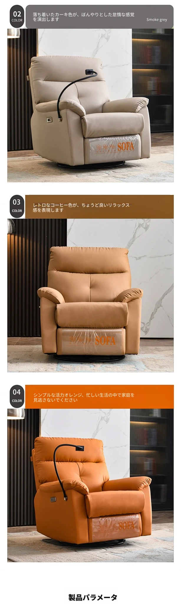 サンセットオレンジ 電動270°回転+USB+スタンド 猫爪皮