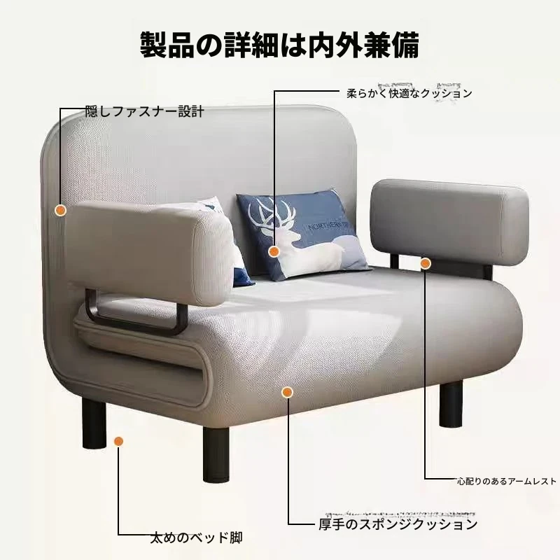 Q8折りたたみソファベッド - バルコニーにも最適!多機能デザインで、小さなスペースにもぴったりなトレンドの布製ソファ。シングル&ダブル対応、快適さとスタイルを両立!
