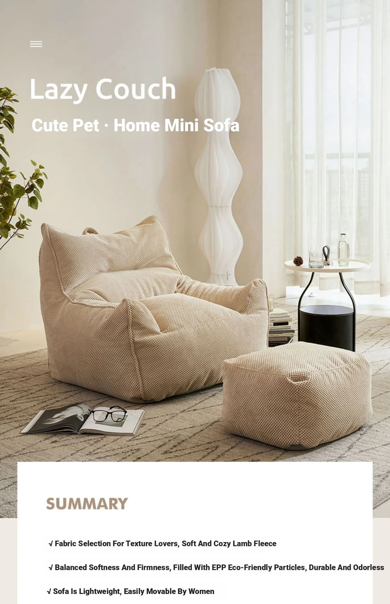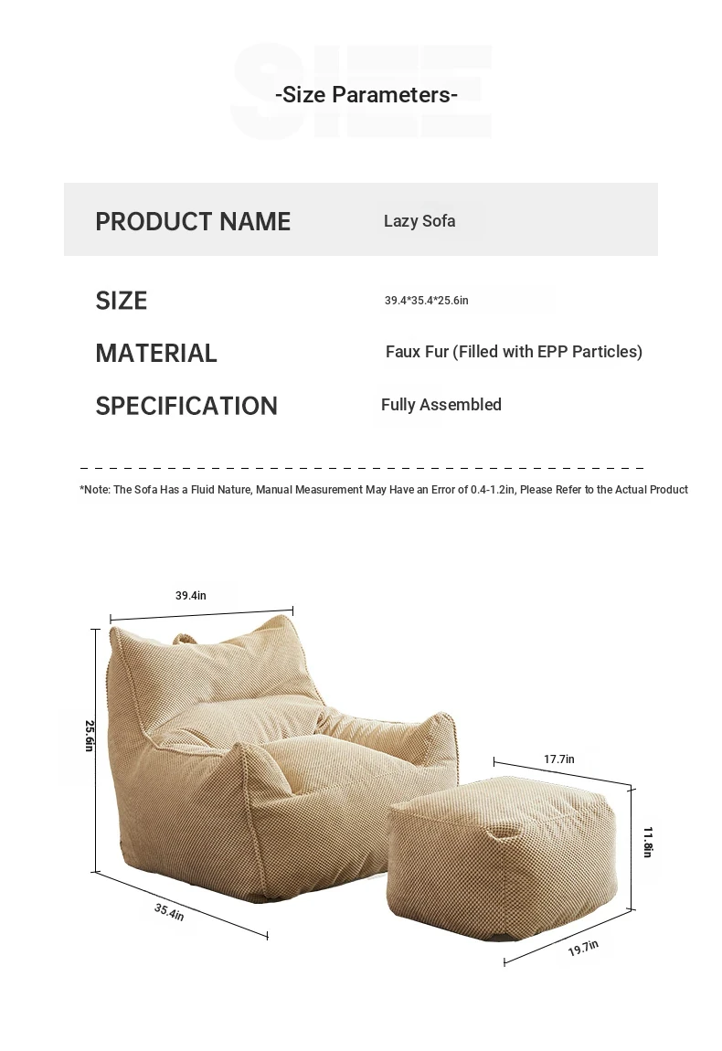 Single-Seat Lazy Bean Bag Sofa - Versatile for Sleeping and Lounging, Perfect for Home, Living Room, Bedroom, and Balcony - Trendy INS Style Small Sofa
