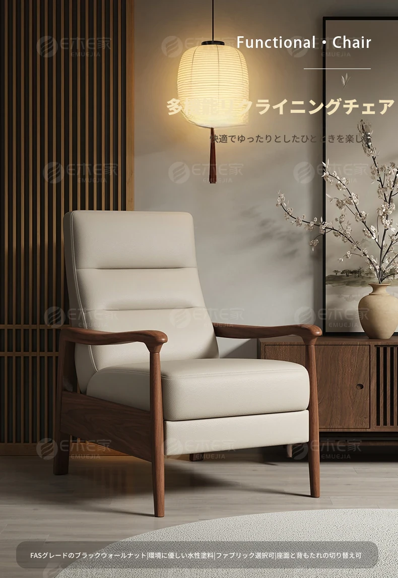 宋式美学の無垢材ソファチェア - リビングやバルコニーに最適なリラックスチェア。座るもよし、寝るもよし!高級ウォールナット材の一人掛け椅子で、優雅なひとときをお楽しみください。