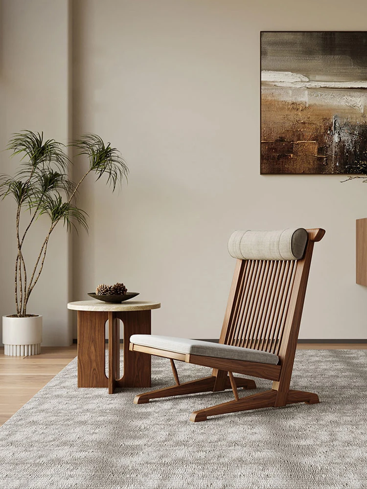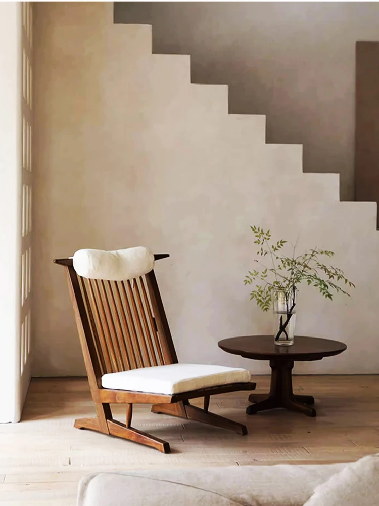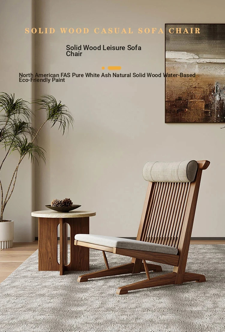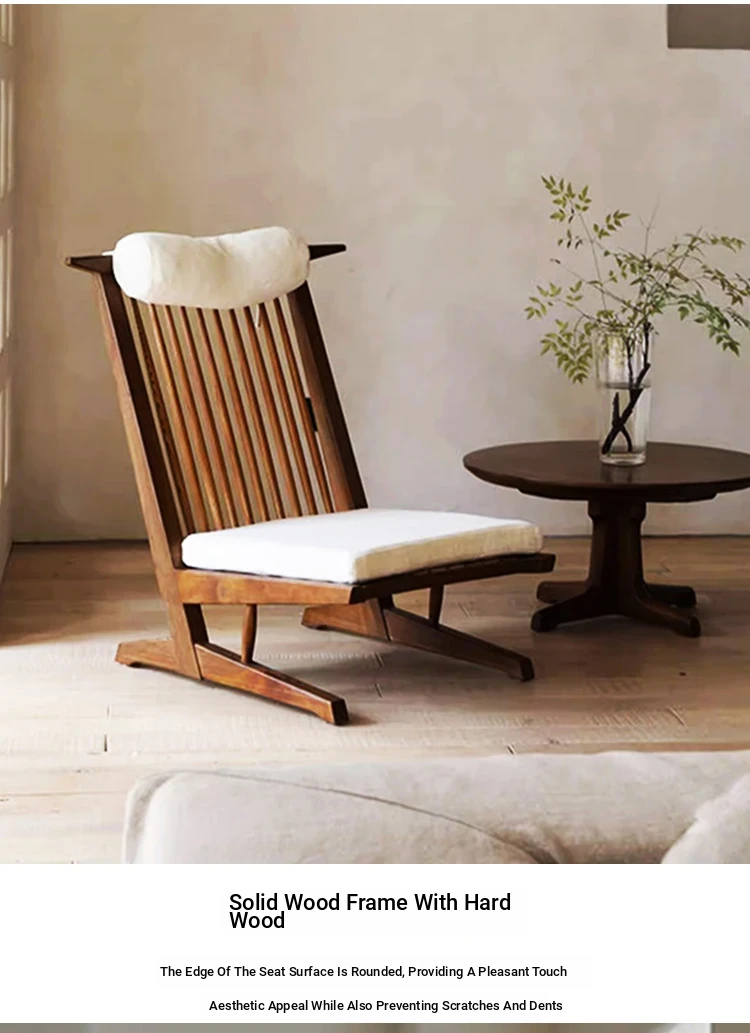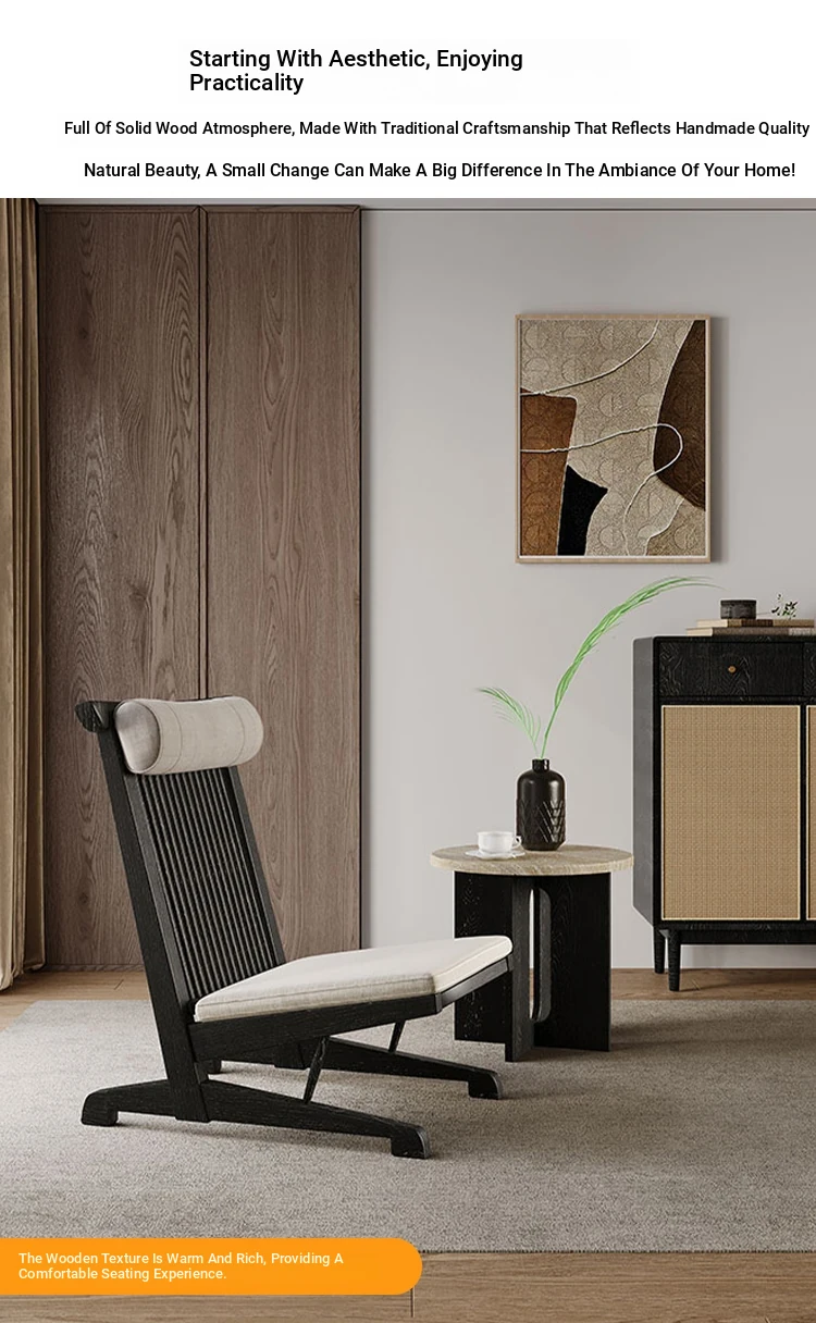 Solid Wood Lounge Chair for Hotels and Guesthouses - Wabi-Sabi Style Recliner, Sturdy Vintage Single Sofa for Balcony and Relaxation