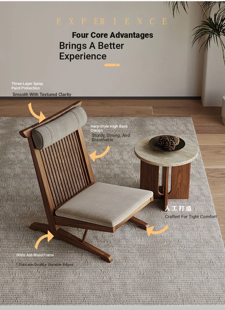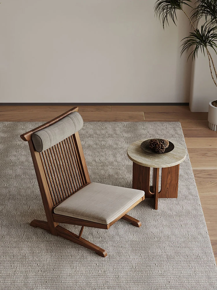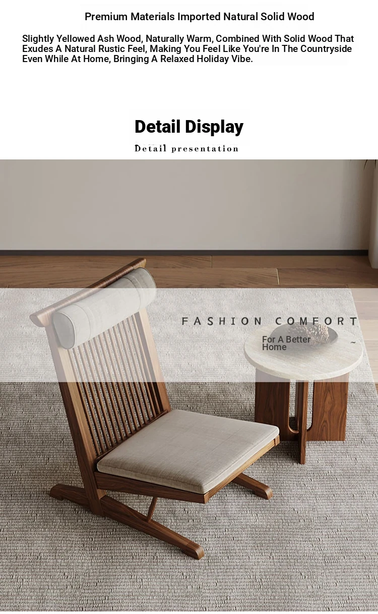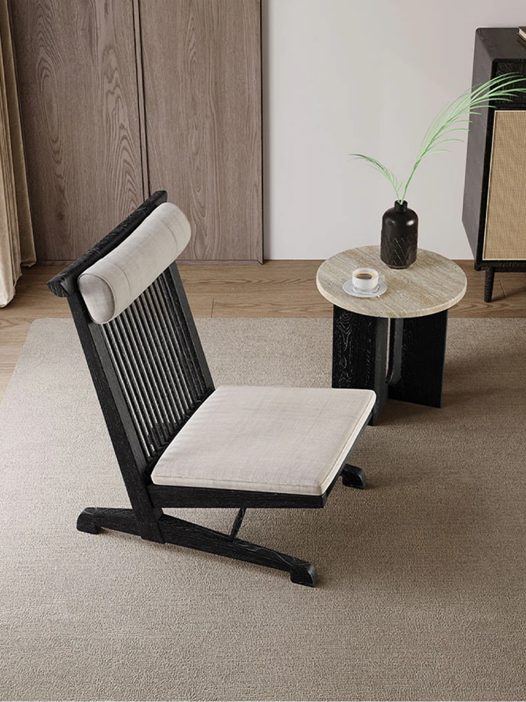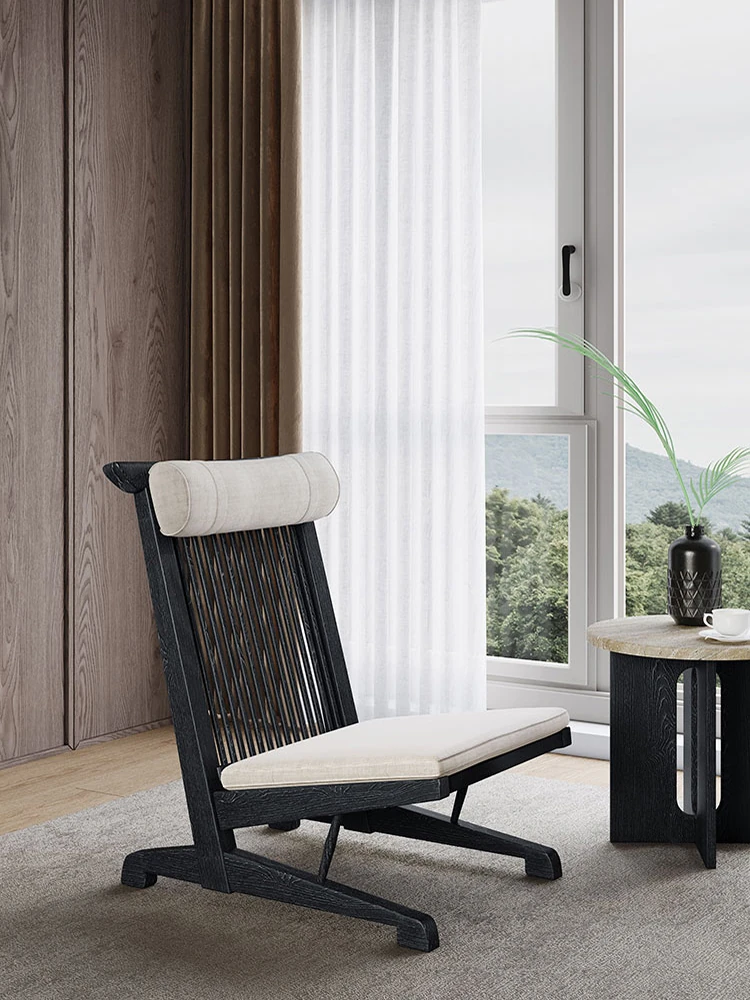 Solid Wood Lounge Chair for Hotels and Guesthouses - Wabi-Sabi Style Recliner, Sturdy Vintage Single Sofa for Balcony and Relaxation