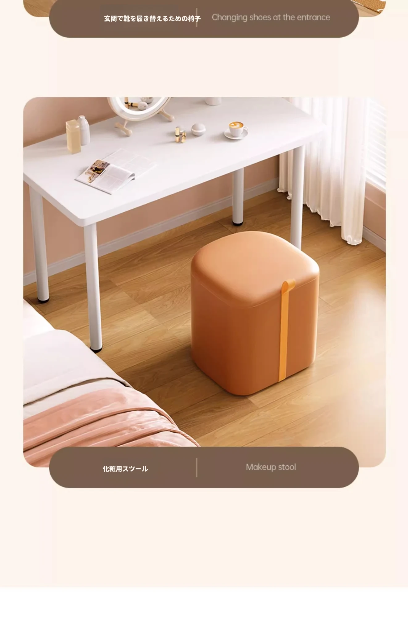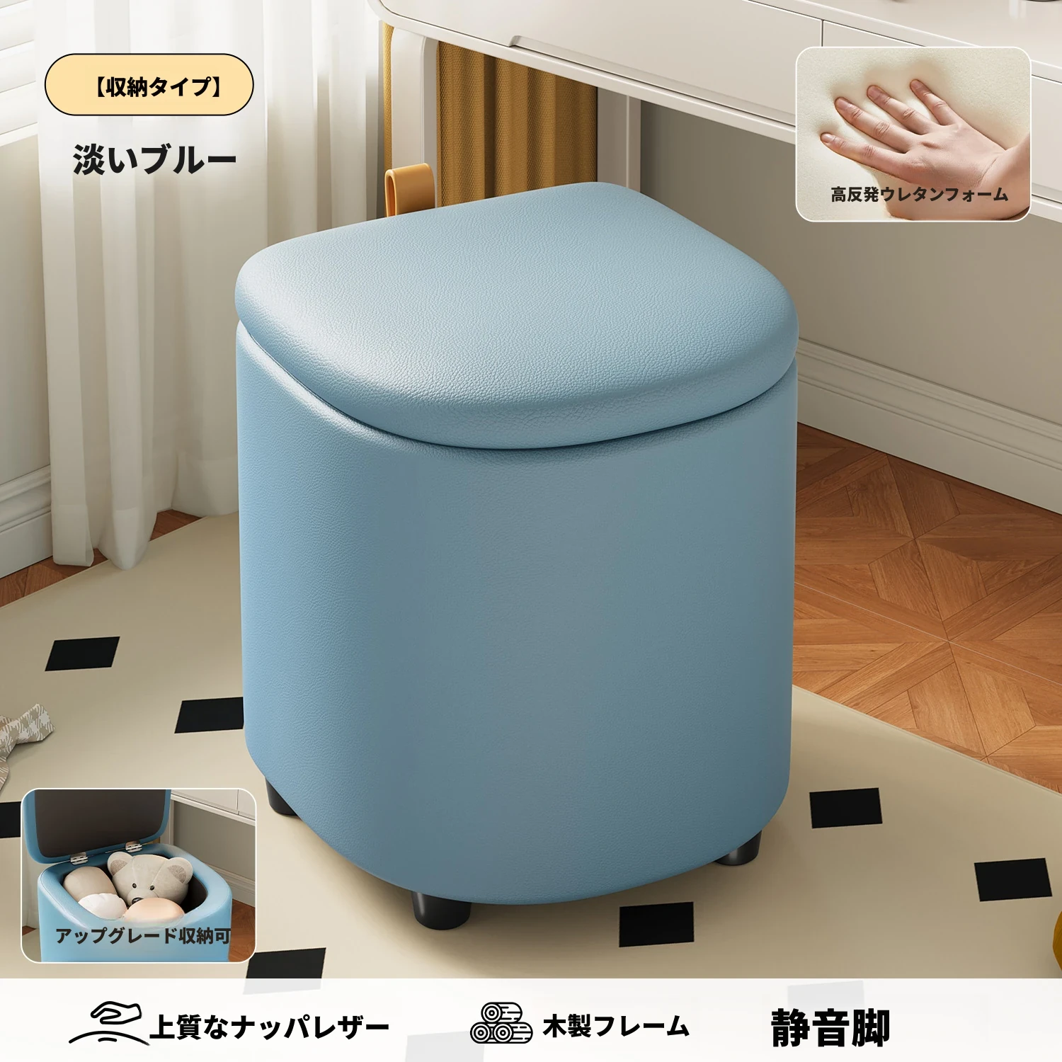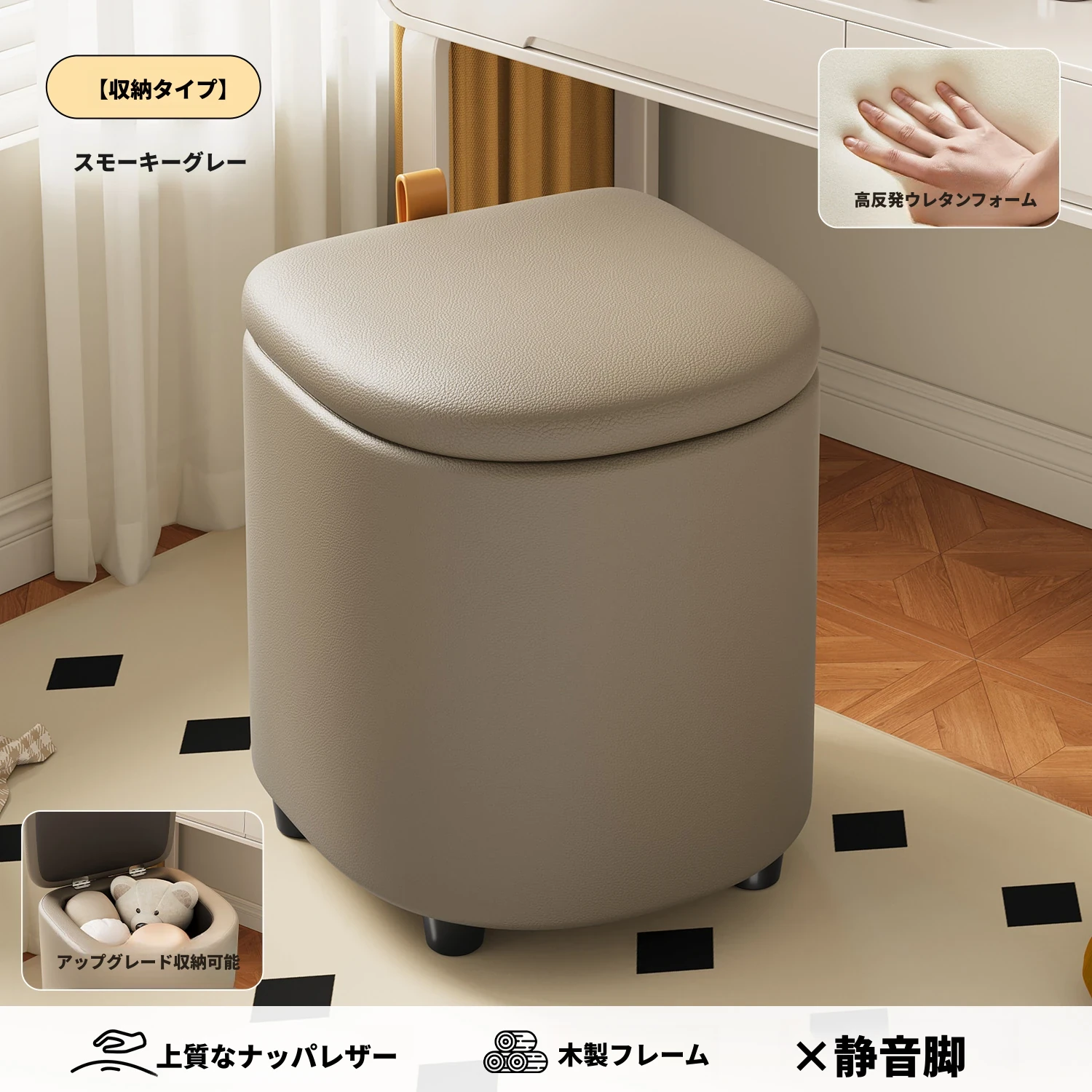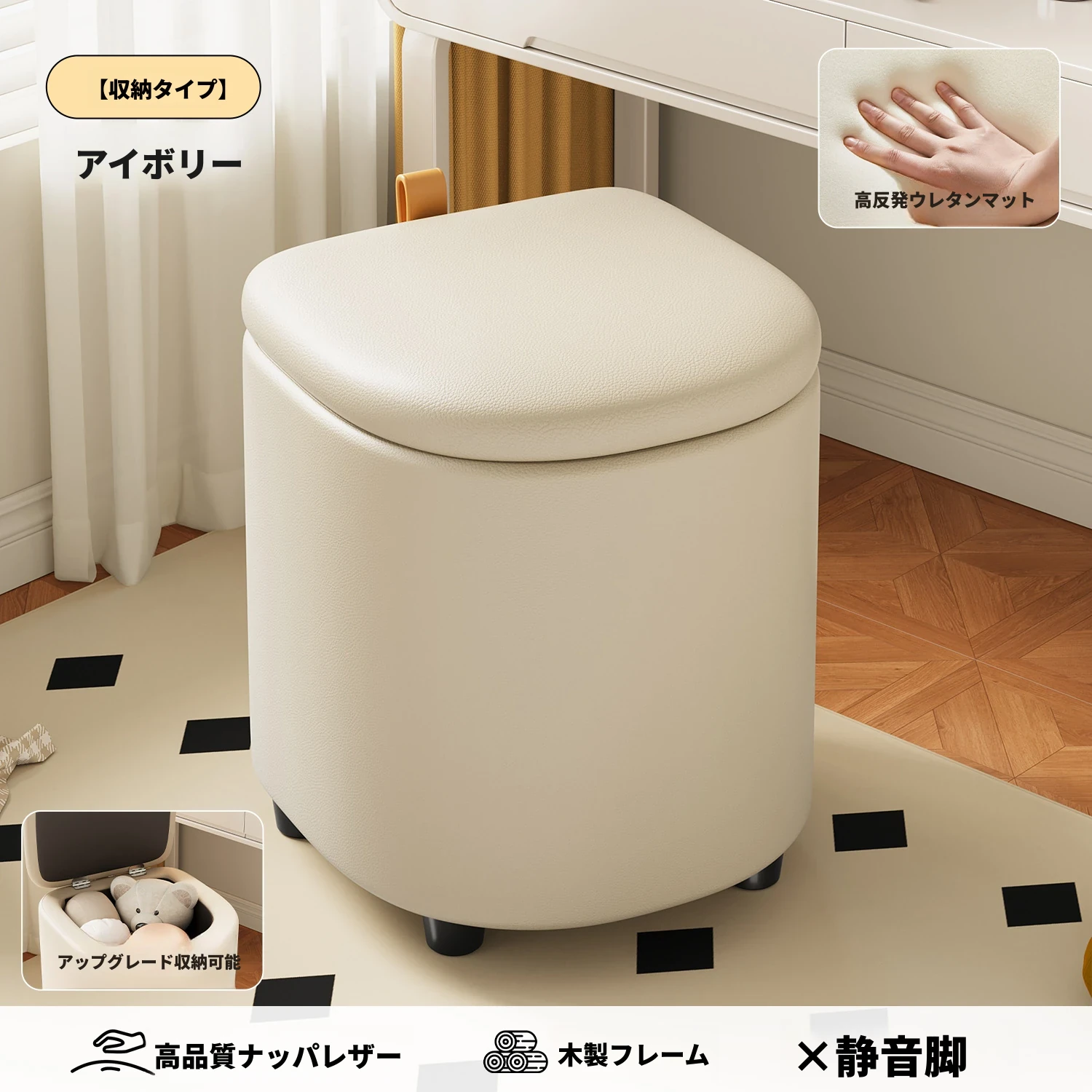 収納付きメイクアップスツール - 女の子のためのクリーム風回転キャスター付きドレッサーチェア、ネイルサロンにも最適なコンパクトなスツール!おしゃれで機能的なデザインで、あなたの部屋を素敵に演出します。