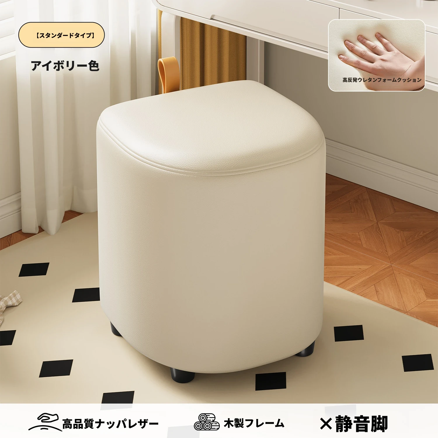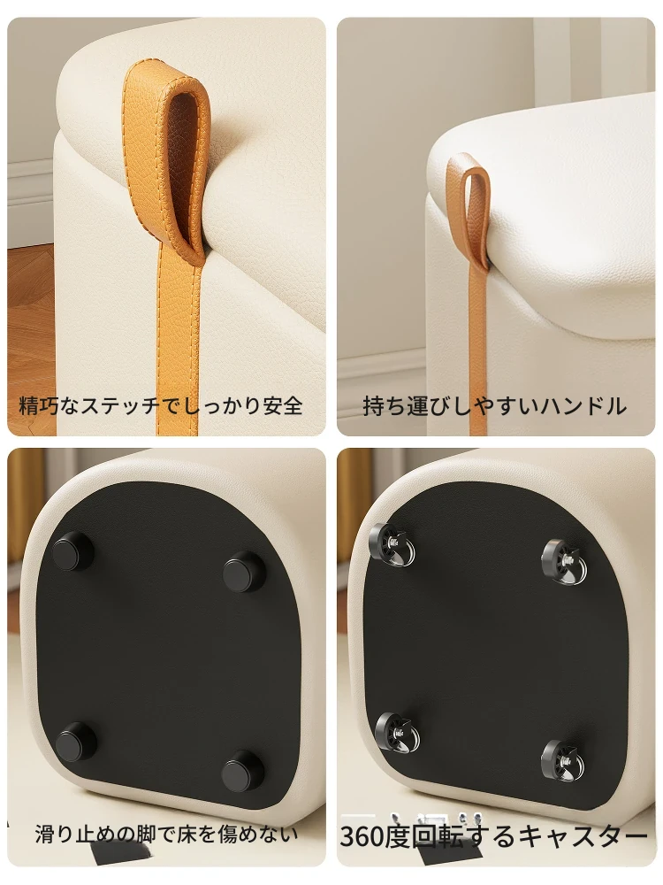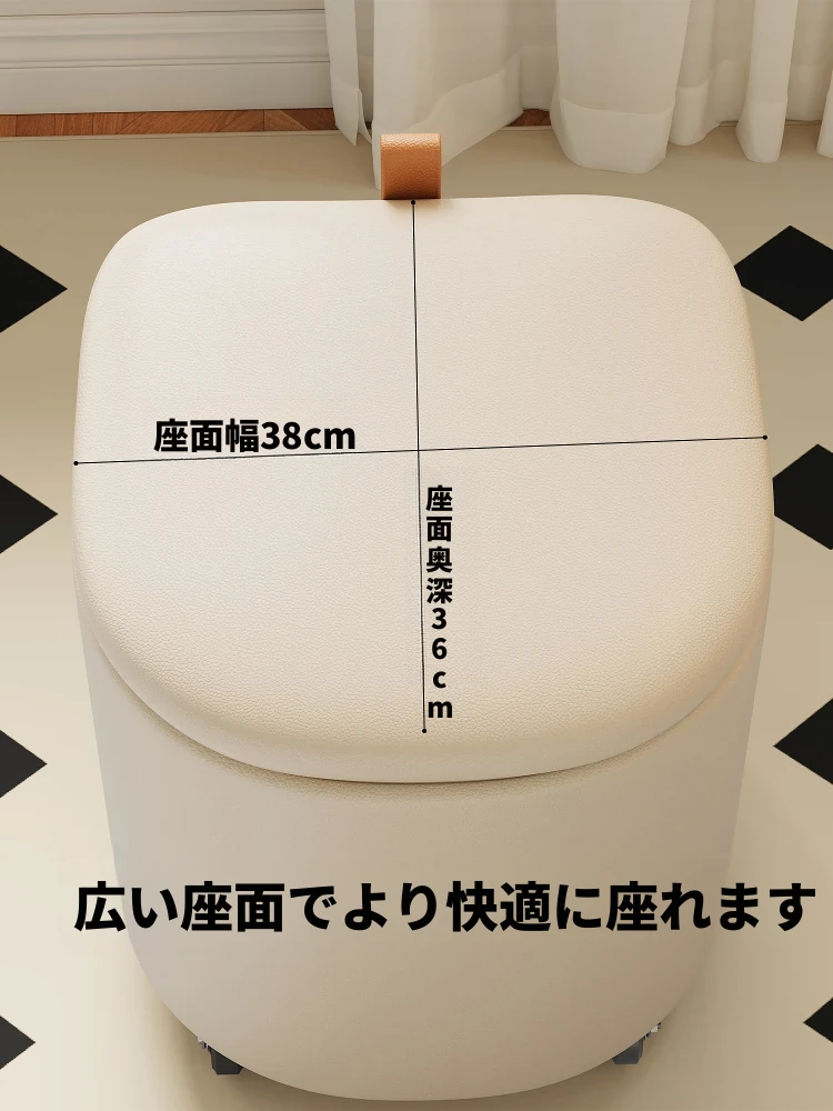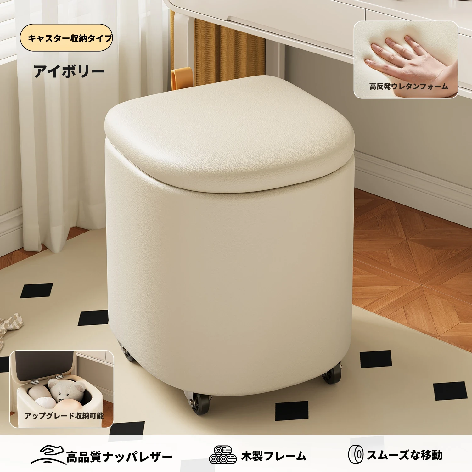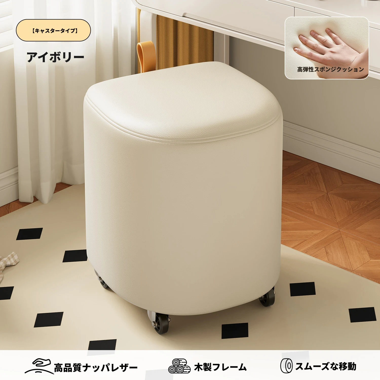 キャスター収納タイプ⭐アイボリー【高弾性スポンジマット】高品質ナッパレザー-360°回転