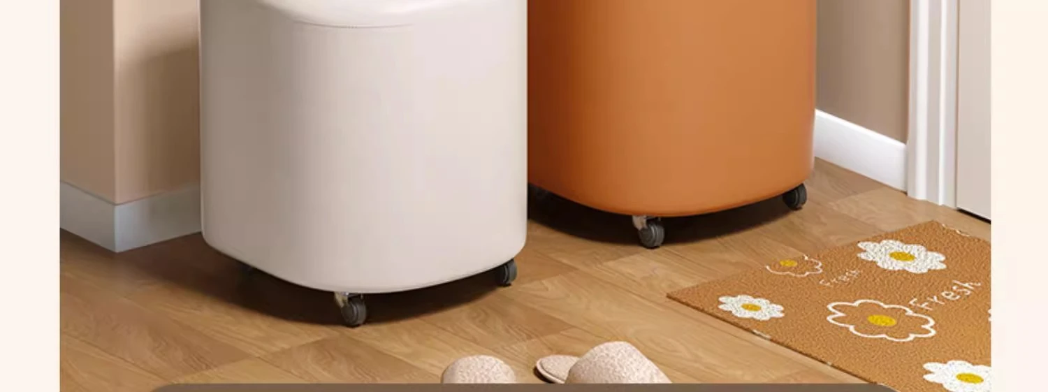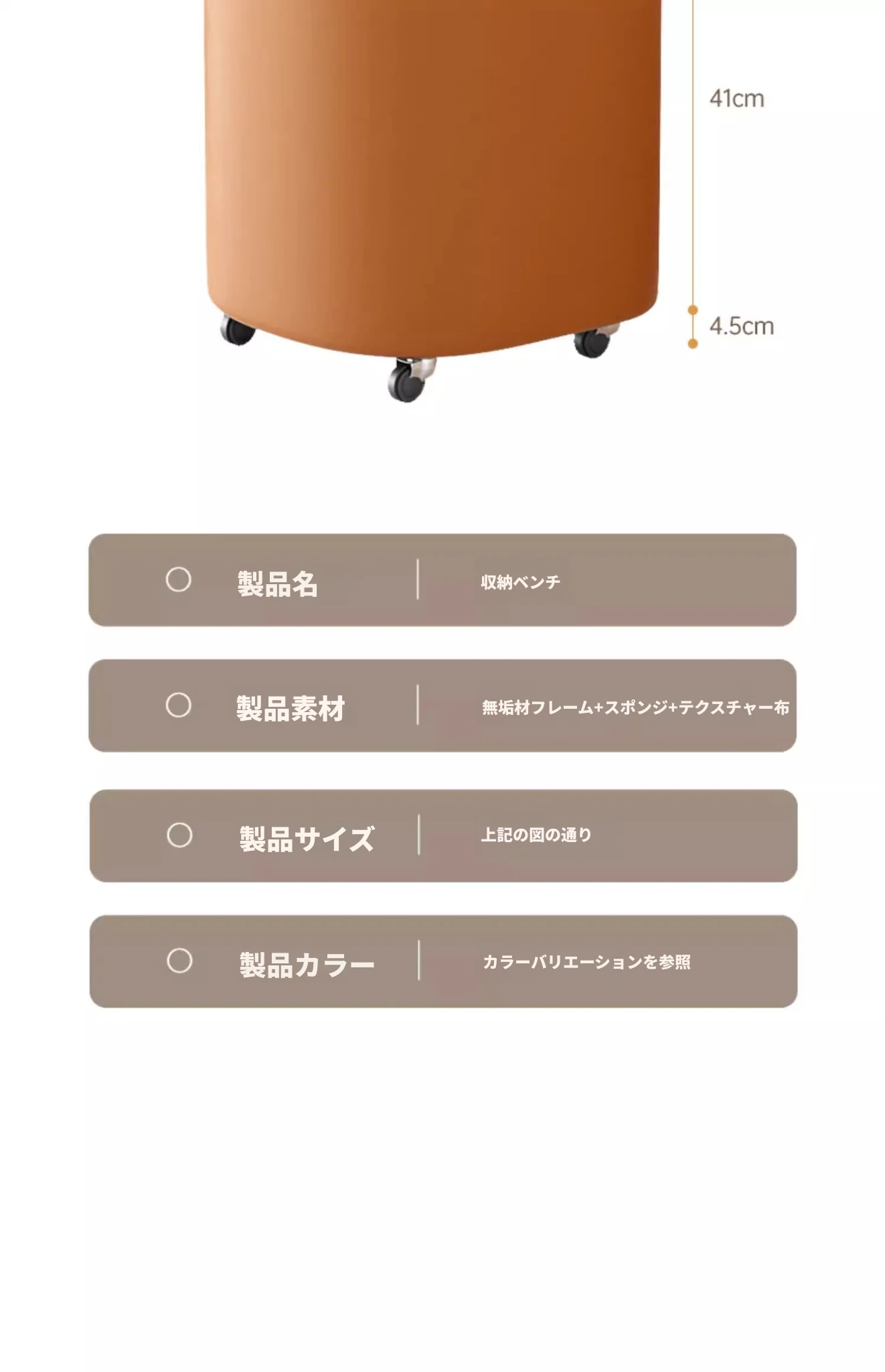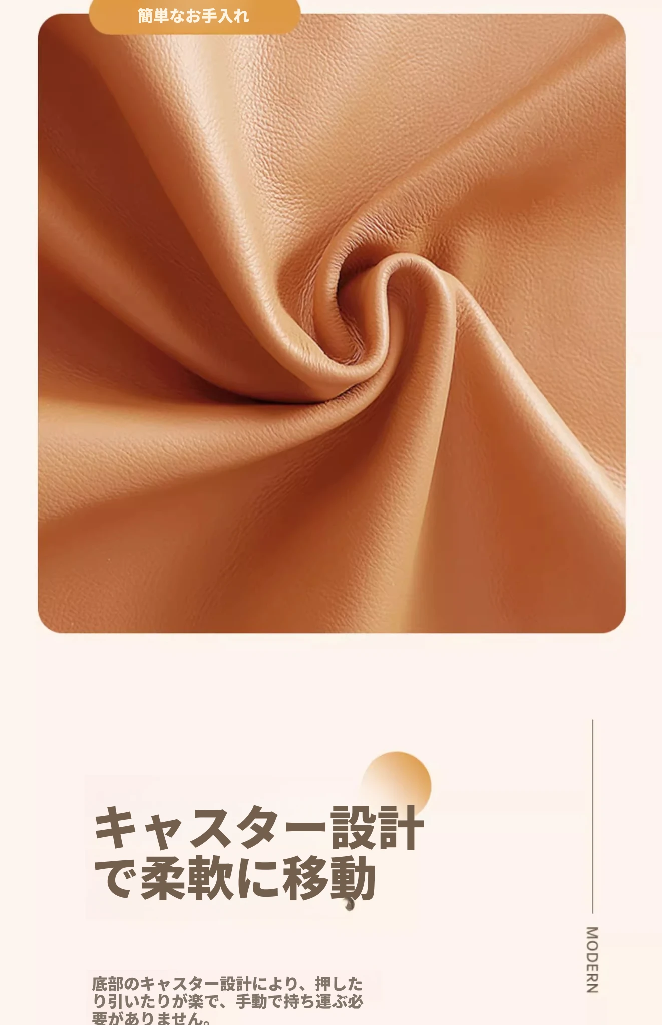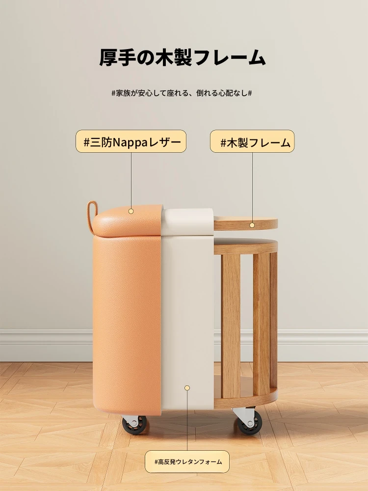 キャスター収納タイプ⭐アイボリー【高弾性スポンジマット】高品質ナッパレザー-360°回転