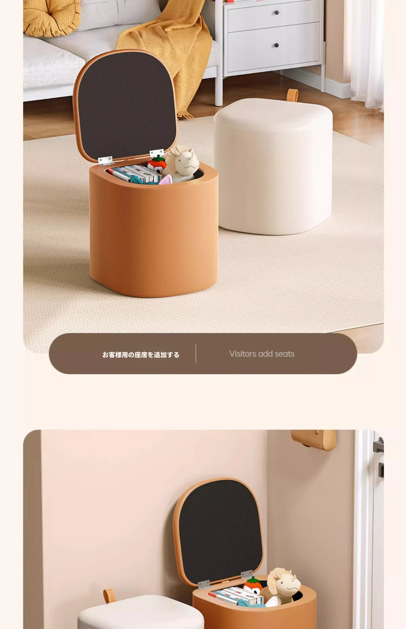 アップグレード収納タイプ⭐アイボリー【高弾性スポンジマット】高品質ナッパレザー
