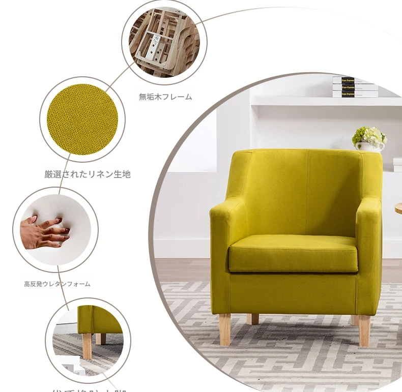 小スペースに最適!軽やかな贅沢感を楽しめる一人用ソファ。リビングやバルコニー、寮やアパートの寝室にもぴったり。快適な背もたれで、長時間の座り心地も抜群なリラックスチェア!