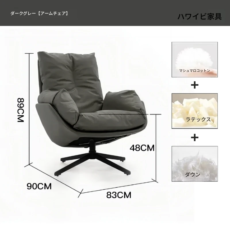 有機シリコンレザー-ダークグレー【単椅子】ぬいぐるみ綿+ラテックス+ダウン