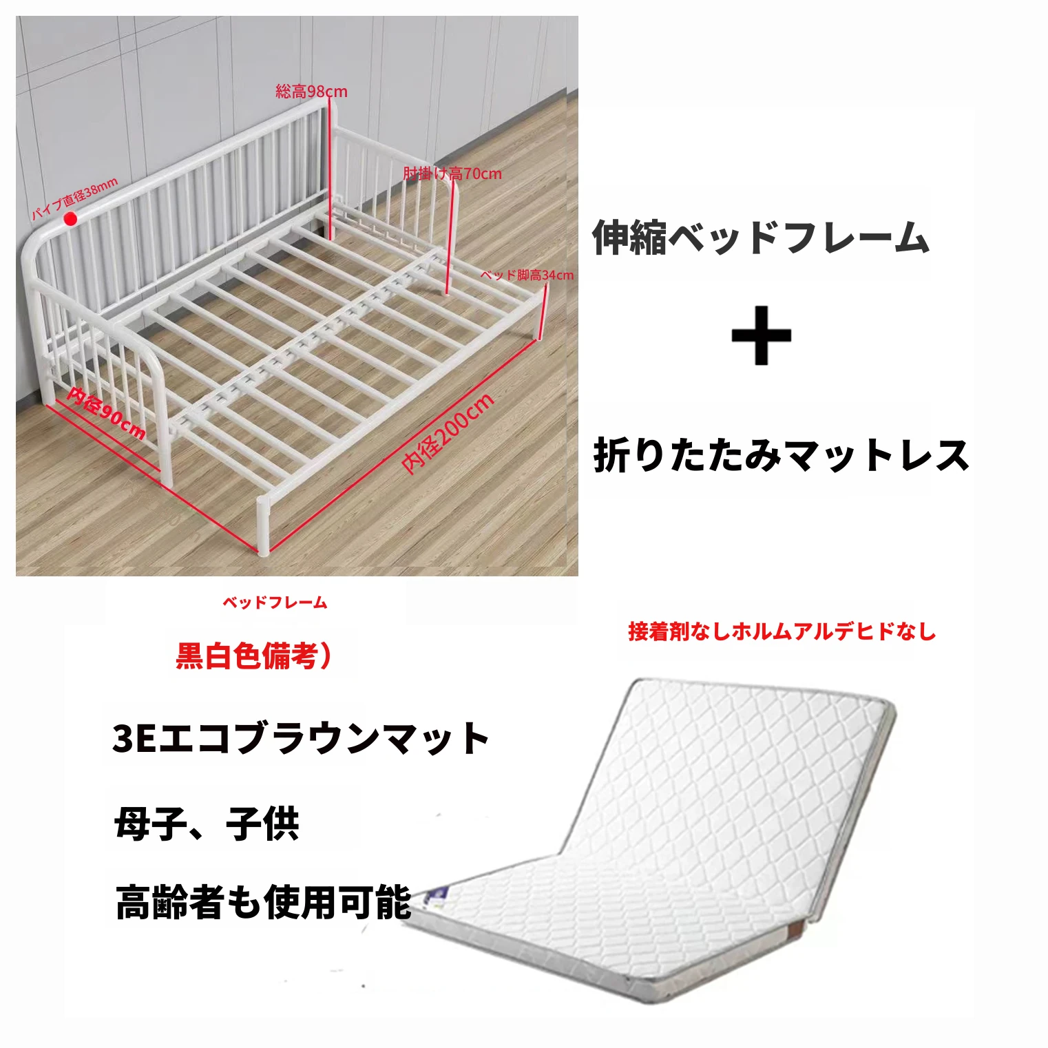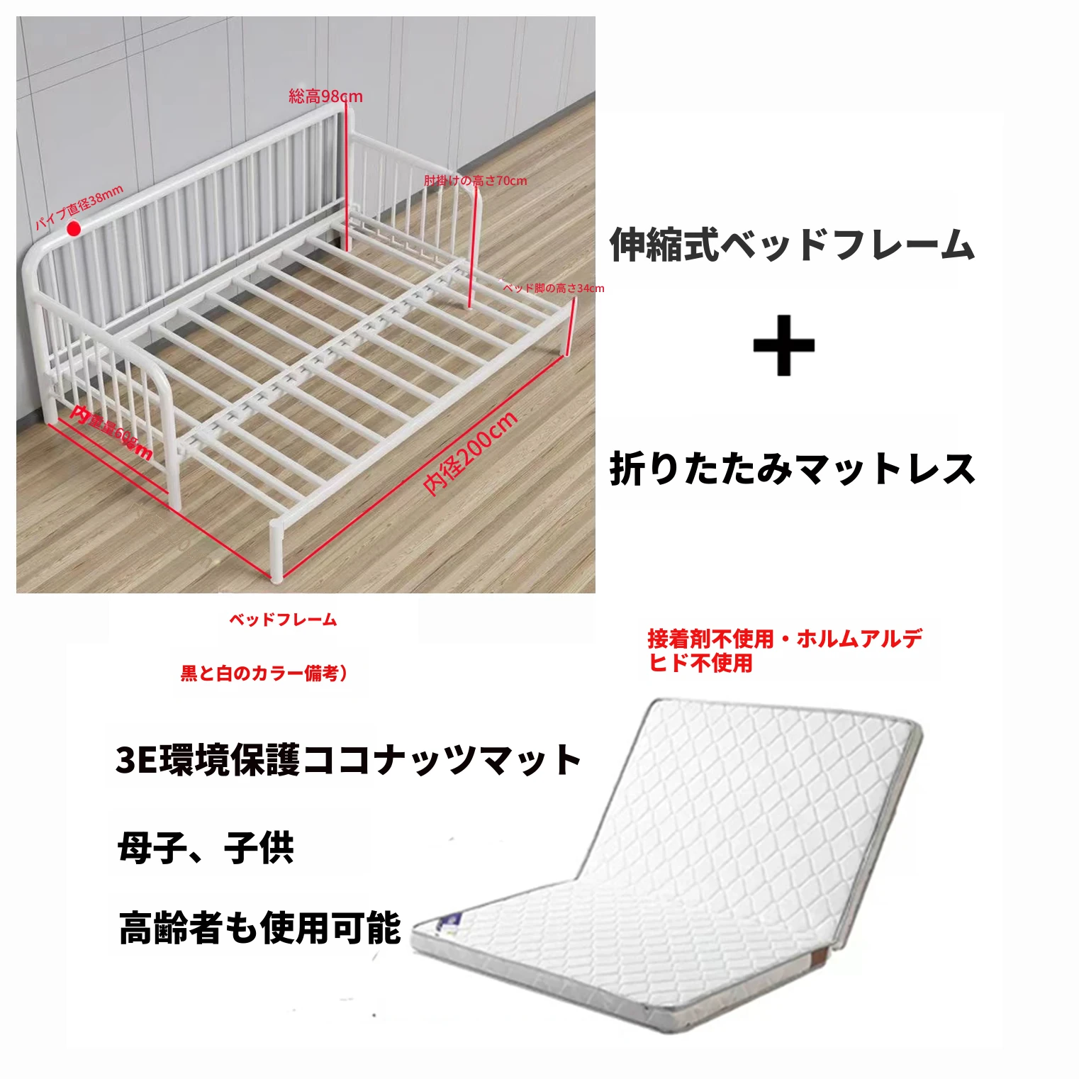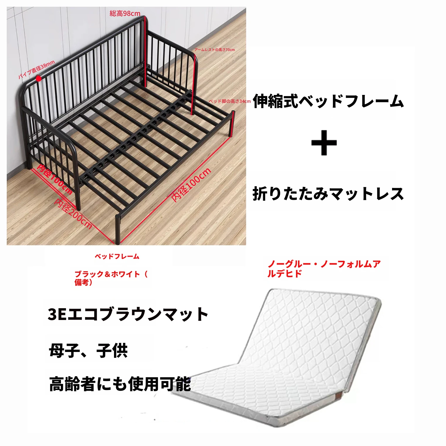 黒/白色1*2メートル背もたれ1.2メートルソファベッドフレーム+マットレス 即発送