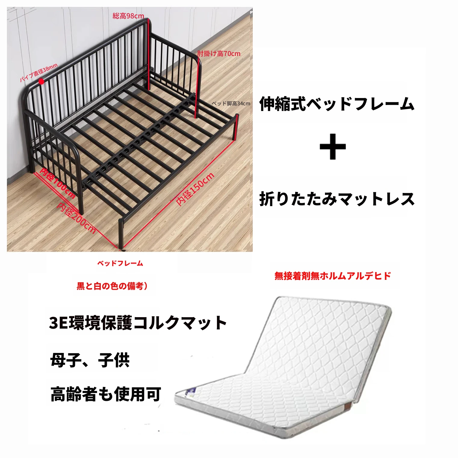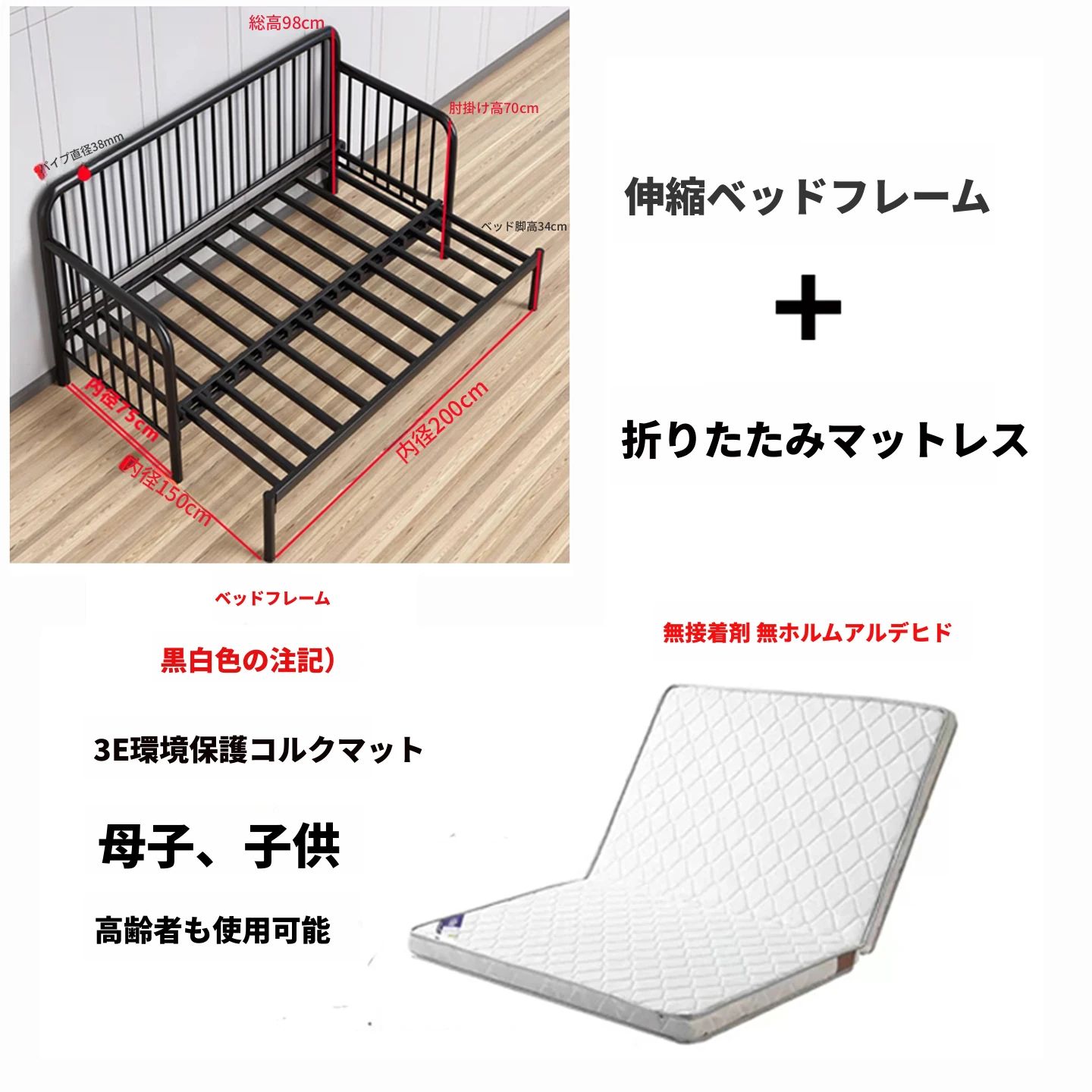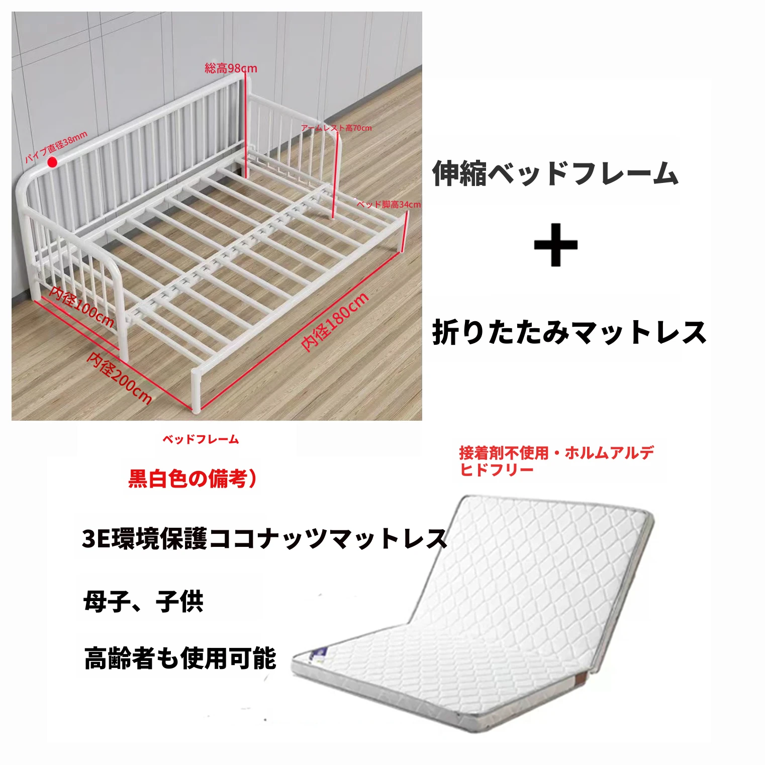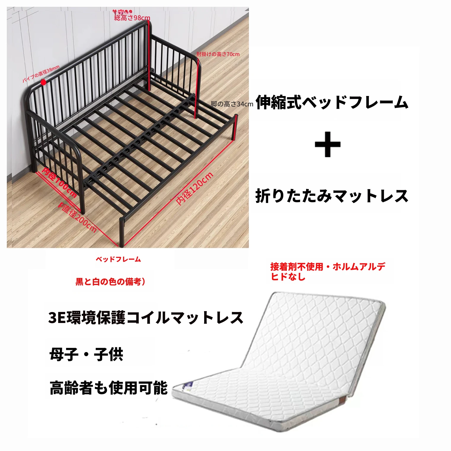 黒/白色1.2*2メートル背もたれ2メートルソファベッドフレーム+マットレス+取り付け 即発送