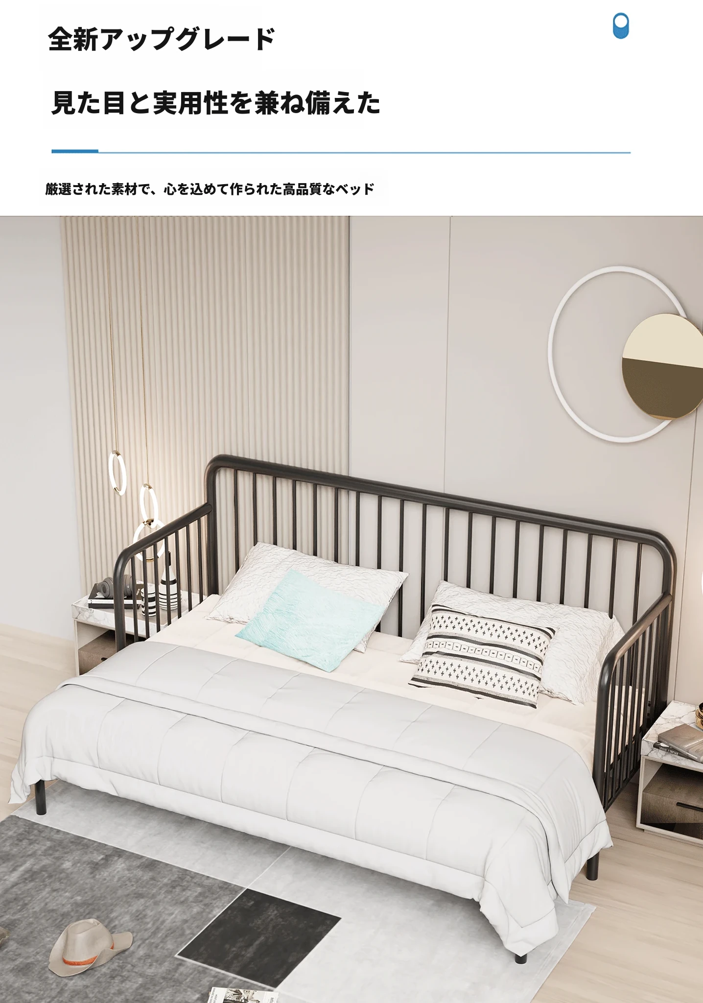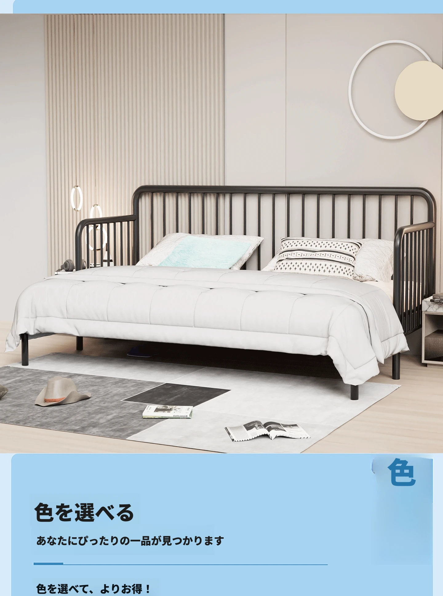 白/黒1.8*2メートル背もたれ2メートルソファベッドフレーム 即発送