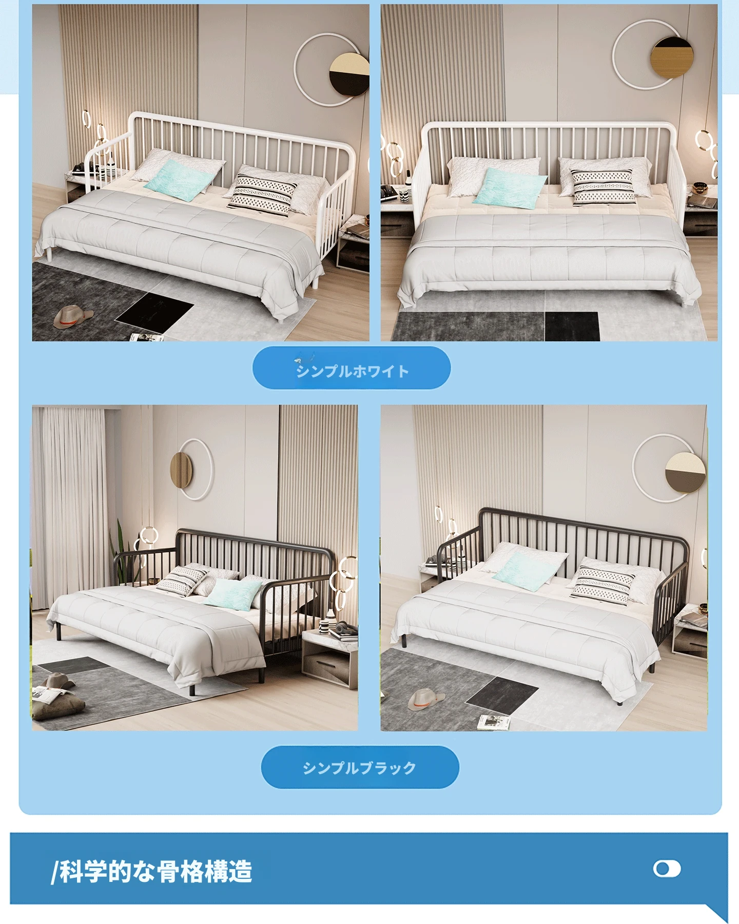 白/黒1.8*2メートル背もたれ1.8メートルソファベッドフレーム 即発送