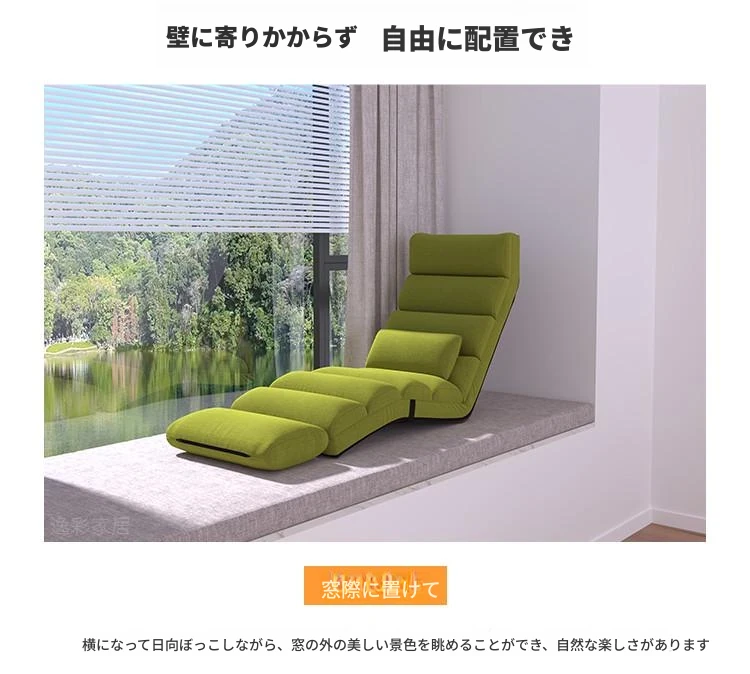 「リラックスソファ:寝転んでも良し、眠っても良し!バルコニーや窓辺にぴったりな折りたたみ式レジャーチェア。快適な背もたれ付き、和室にも最適なコンパクトソファベッド!」