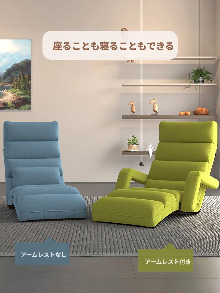 スタンダード-アームレスト付き-グリーン(座る・横になる・寝ることができる)
