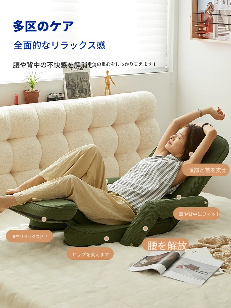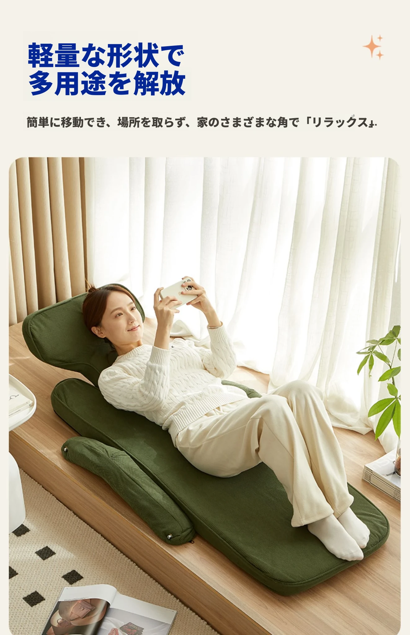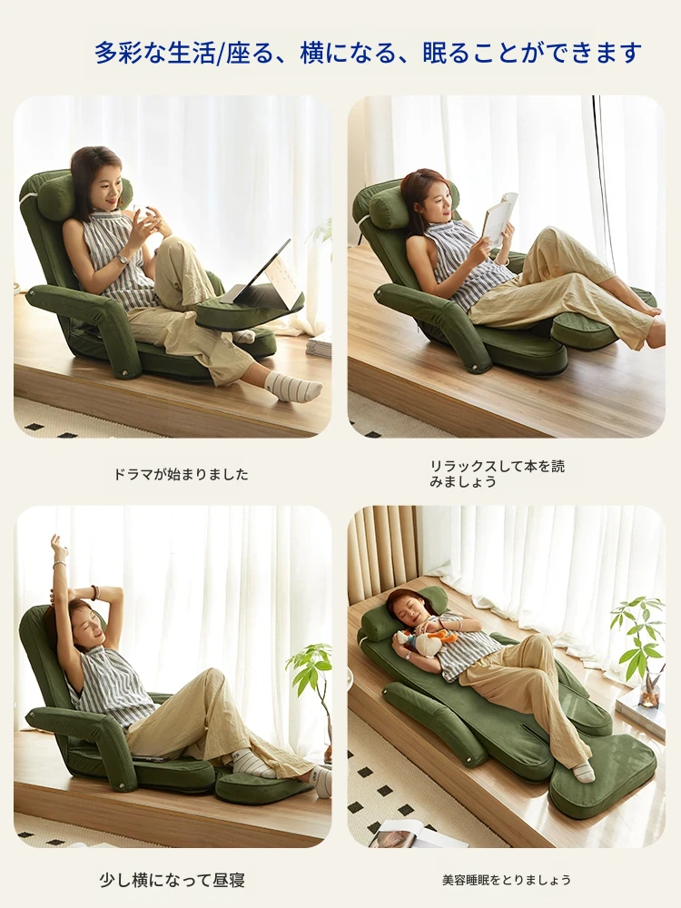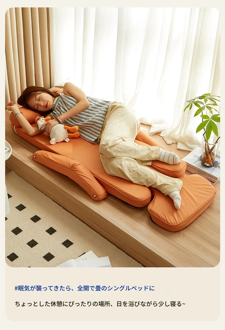 リラックスできる畳スタイルのソファ!寝転んだり、寝たりできる一人用ソファベッド。背もたれ付きで、窓辺や寝室にぴったりな小さなソファです。快適さとスタイルを両立させた、あなたの癒しの空間を演出します!