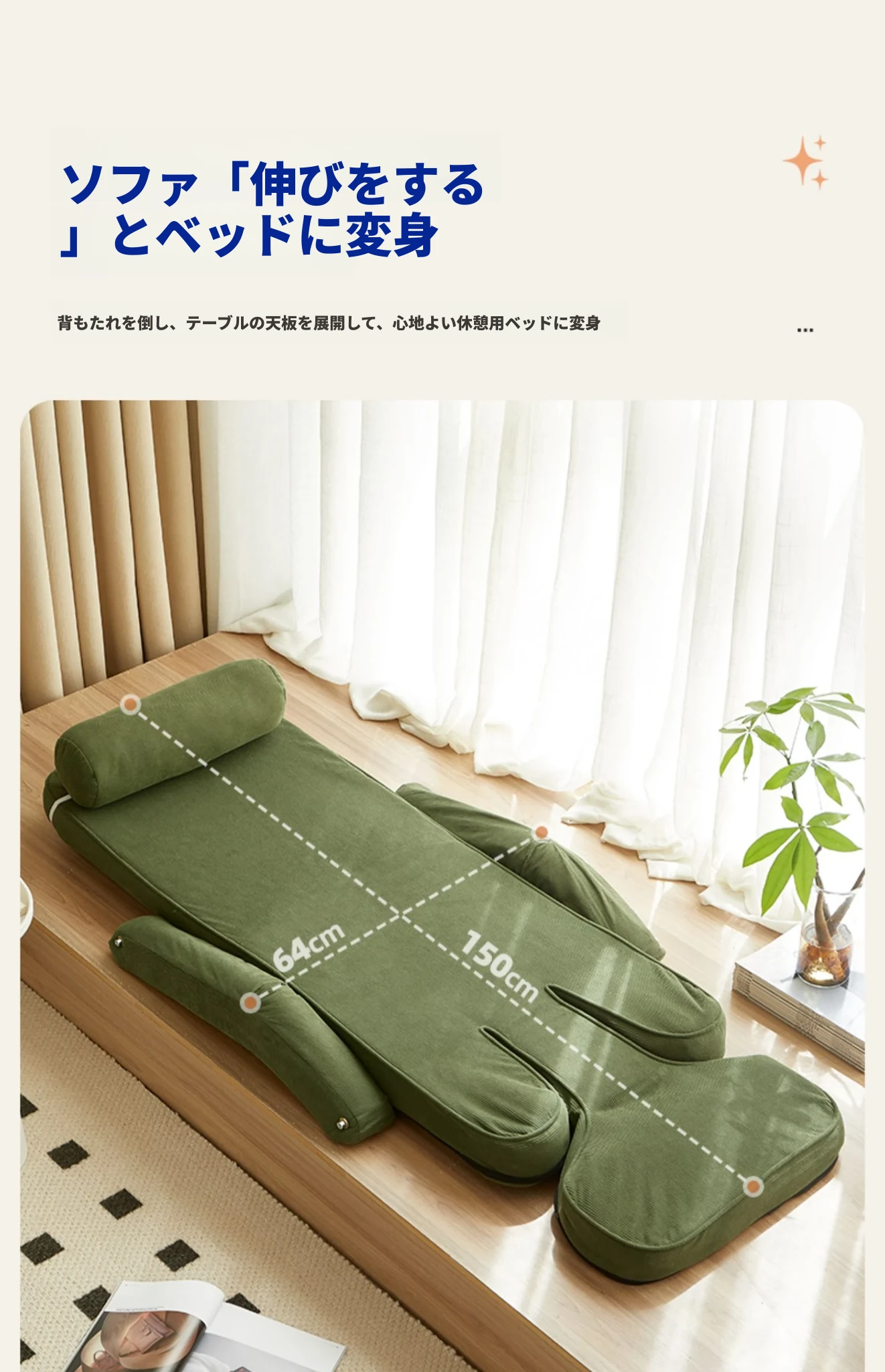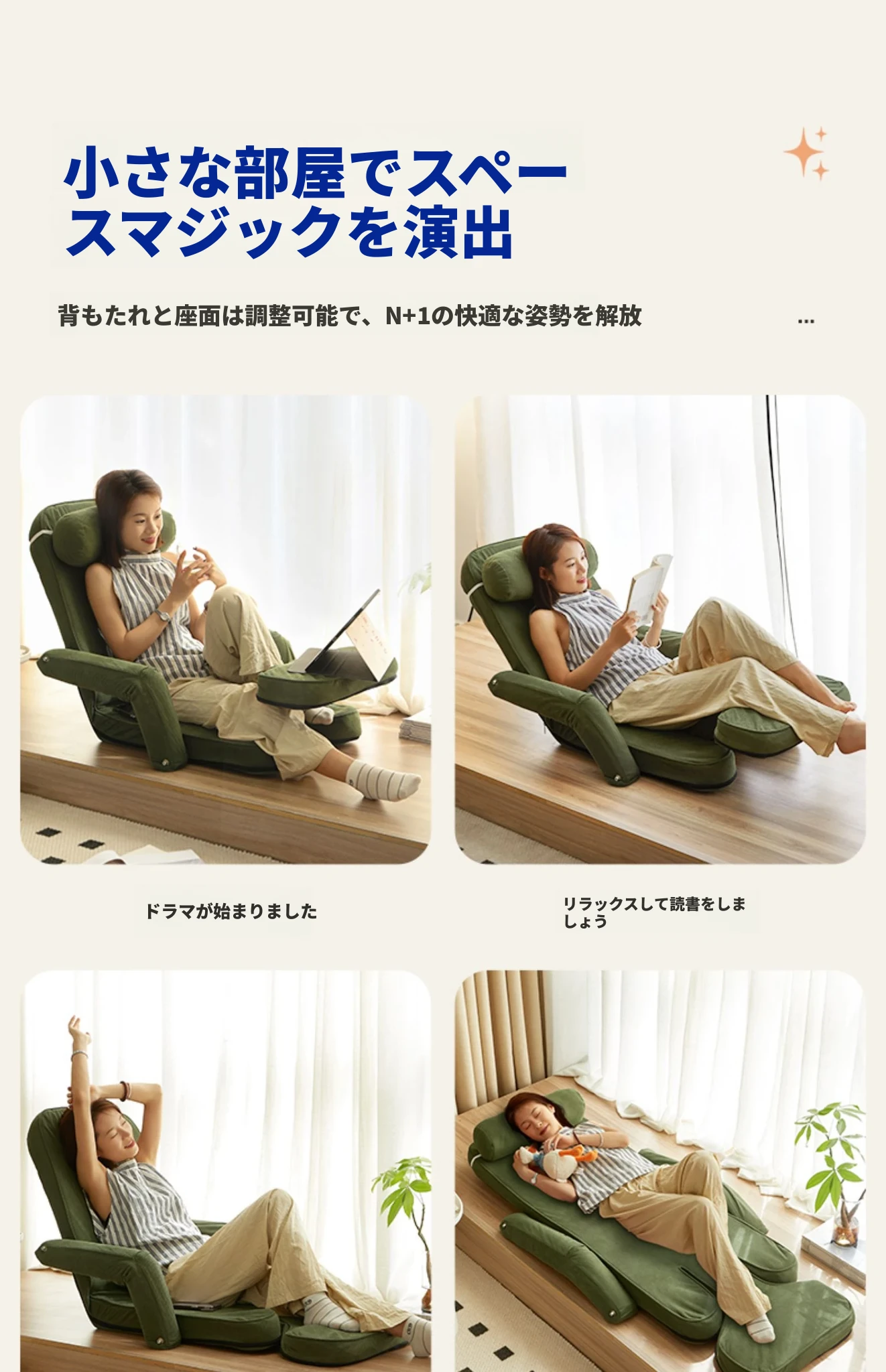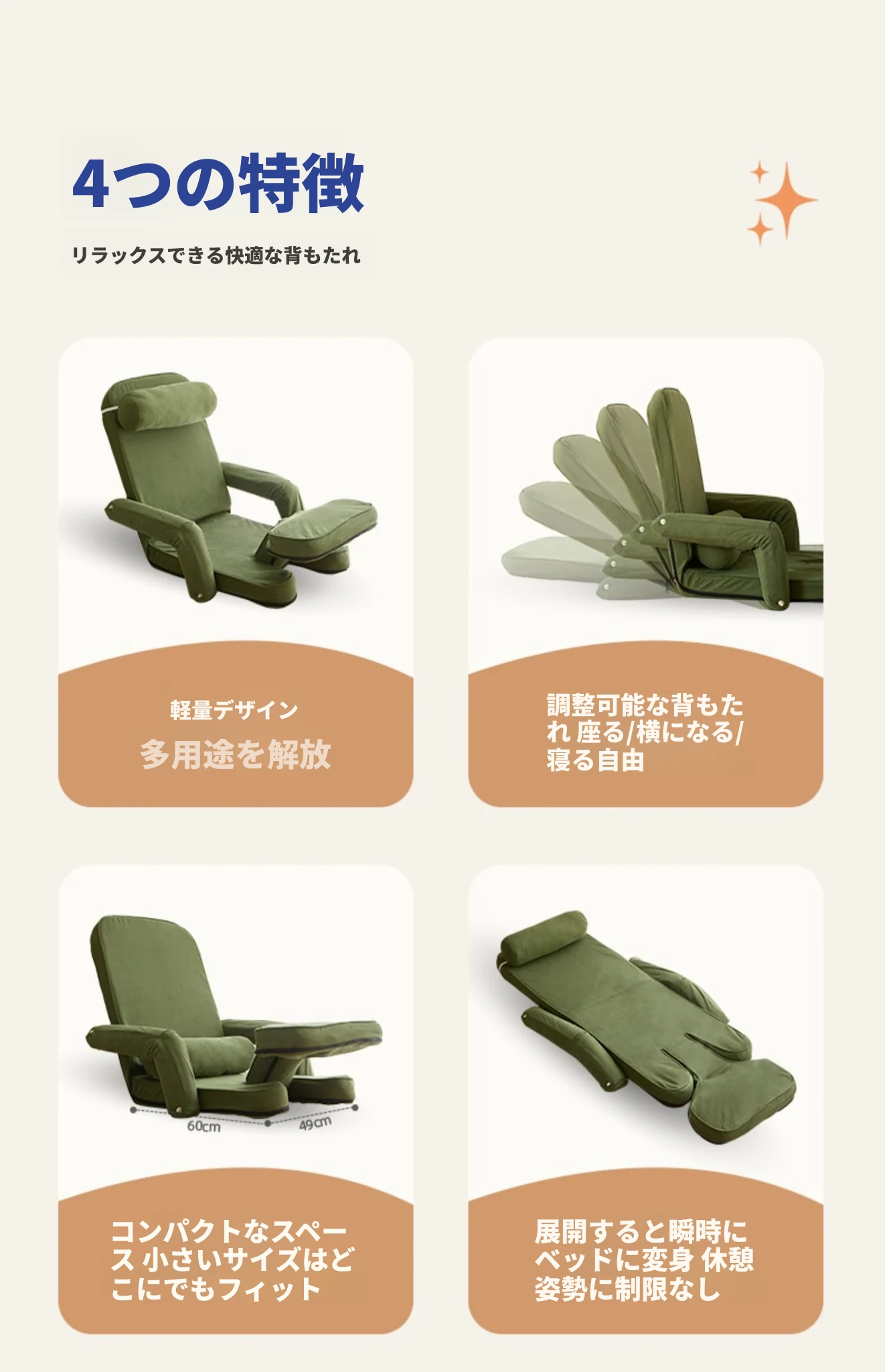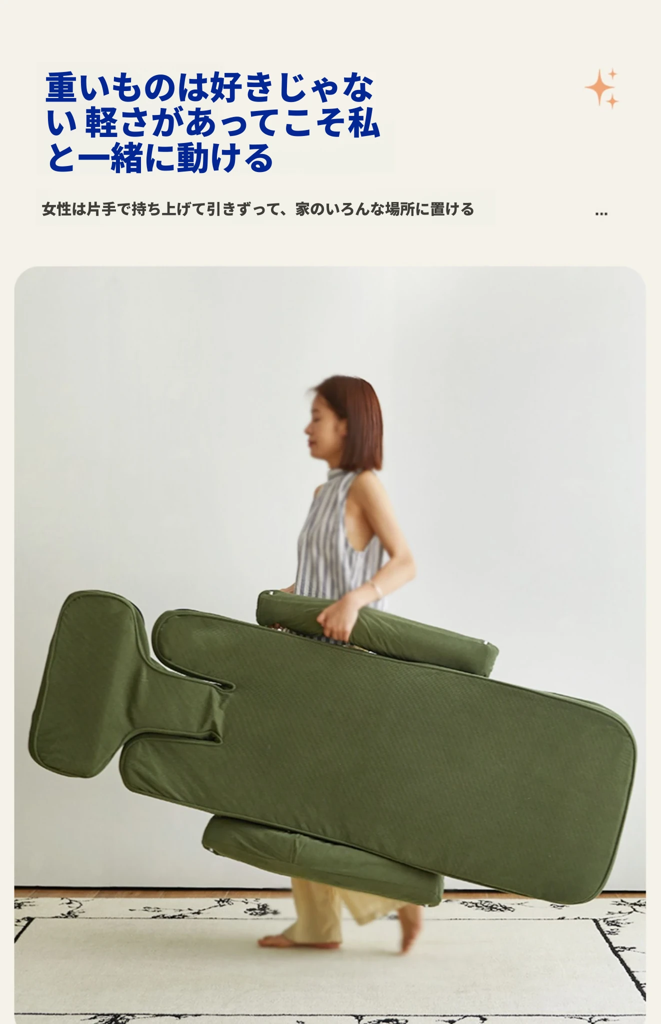リラックスできる畳スタイルのソファ!寝転んだり、寝たりできる一人用ソファベッド。背もたれ付きで、窓辺や寝室にぴったりな小さなソファです。快適さとスタイルを両立させた、あなたの癒しの空間を演出します!