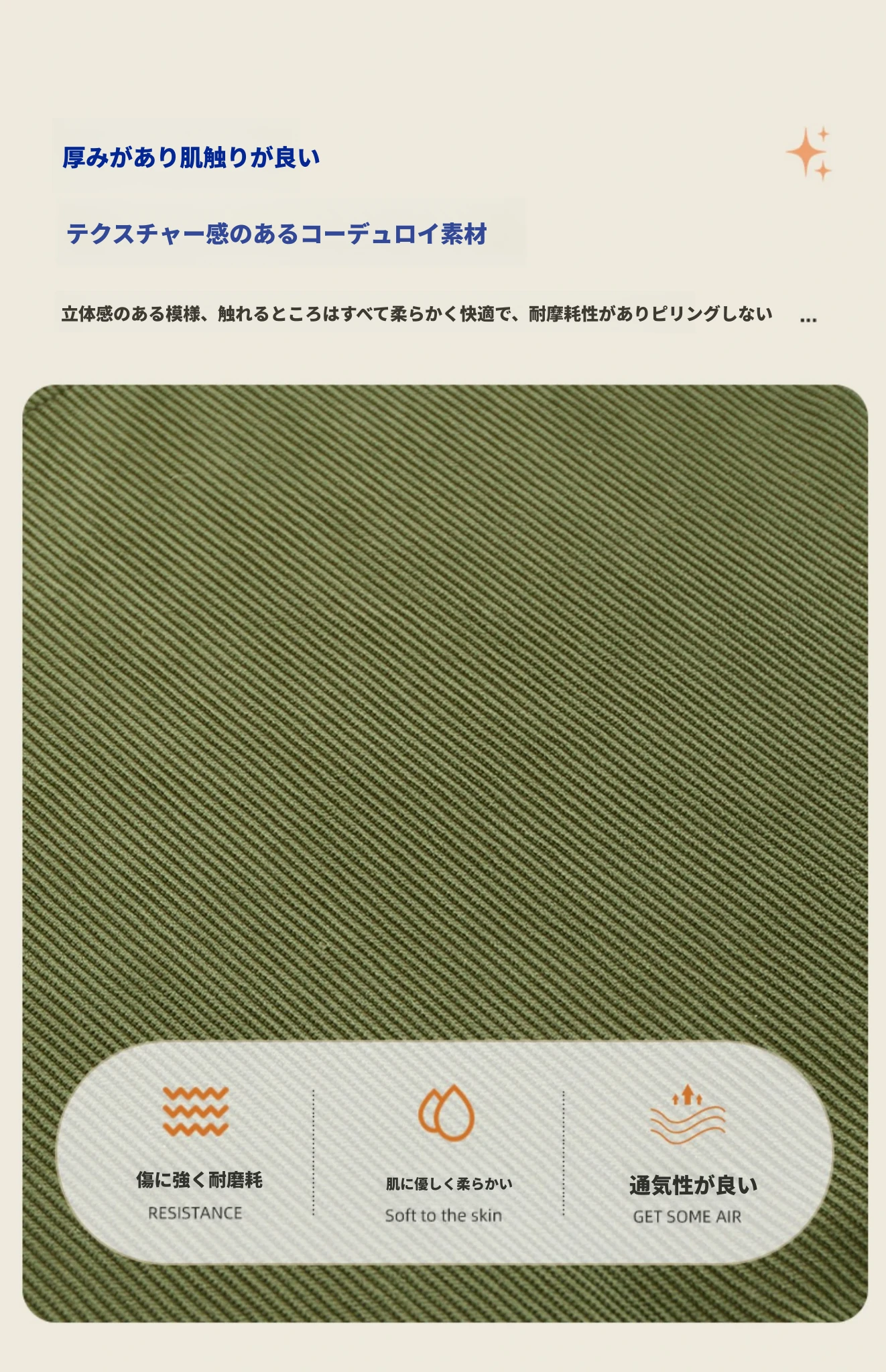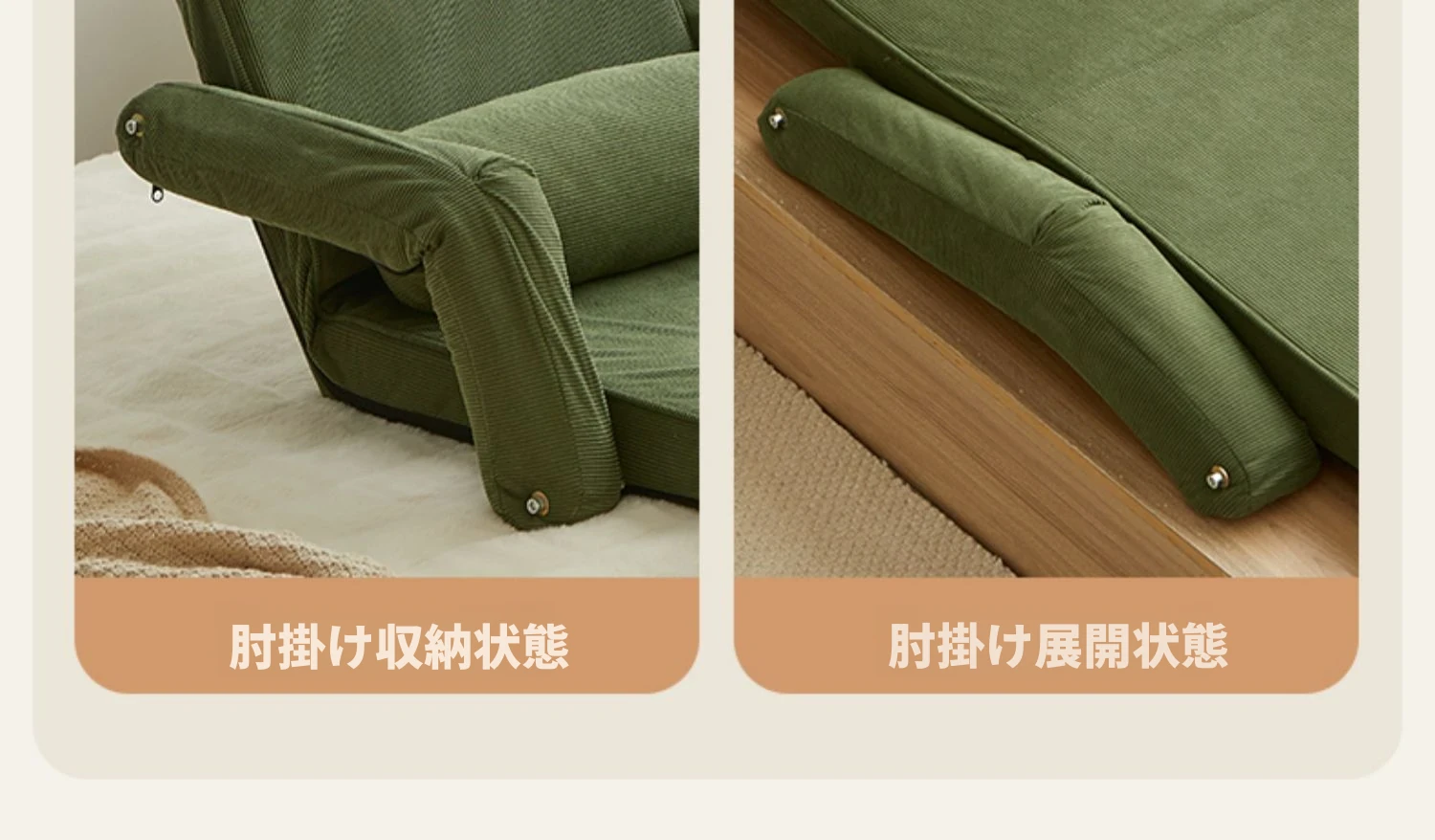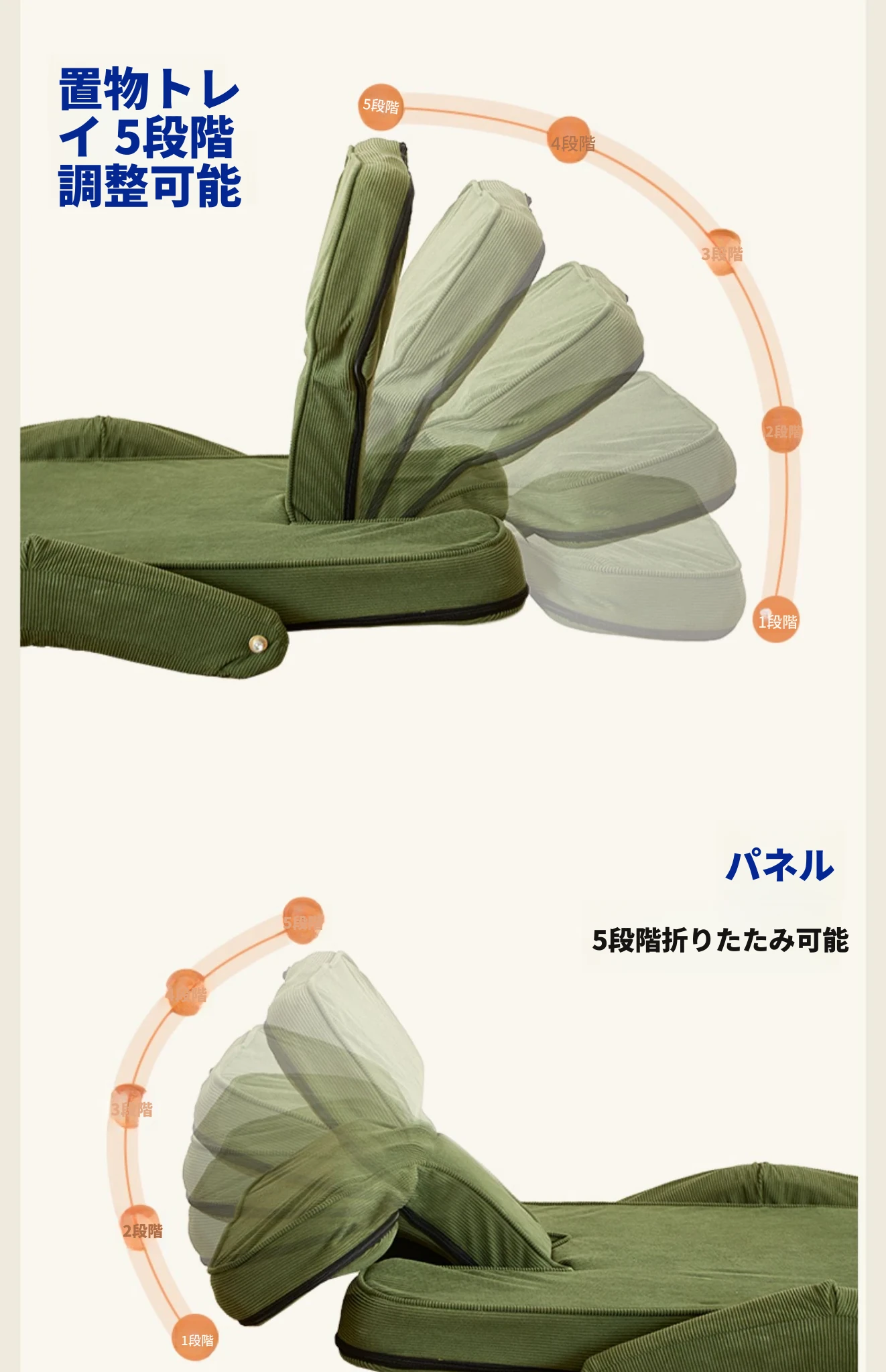 アームレスト付き - コーデュロイ ダークグリーン 背もたれ5段階+収納トレイ5段階調整可能(同色クッション付き)