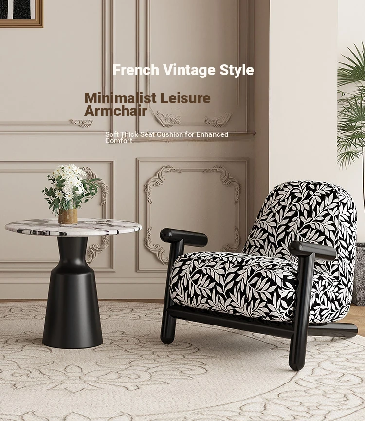 Vintage French Single Chair - Retro Chic Armchair for Cozy Guesthouses, Hotels, and Lounges - Perfect for Reception Areas and Tea Table Combinations.