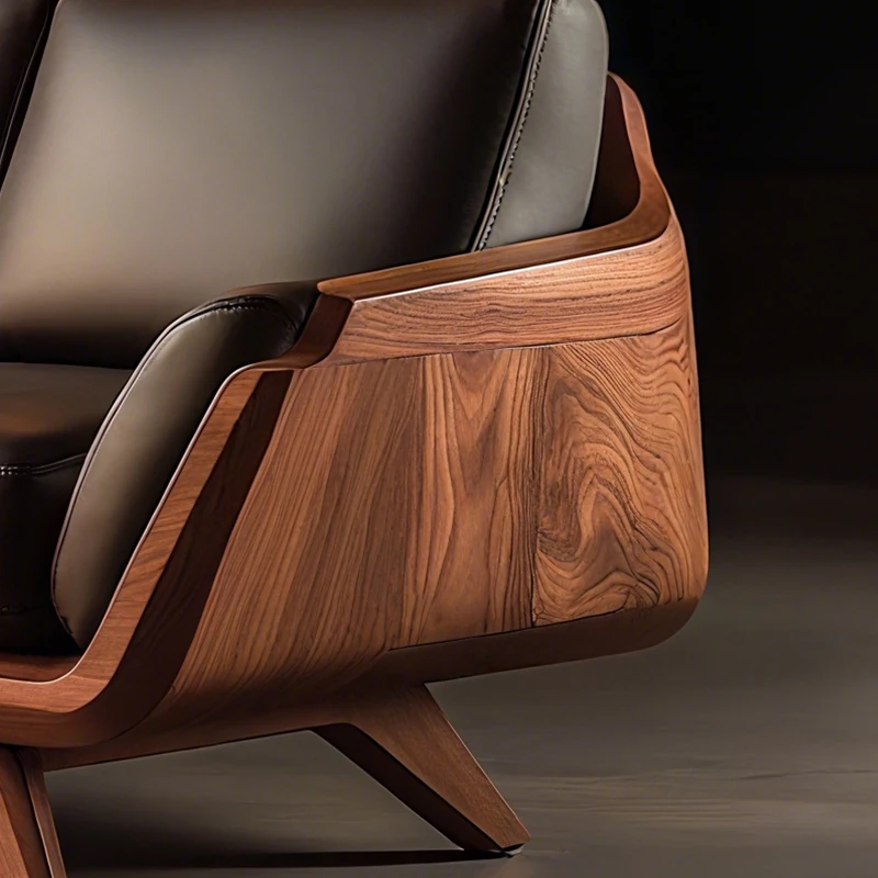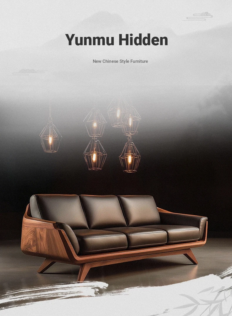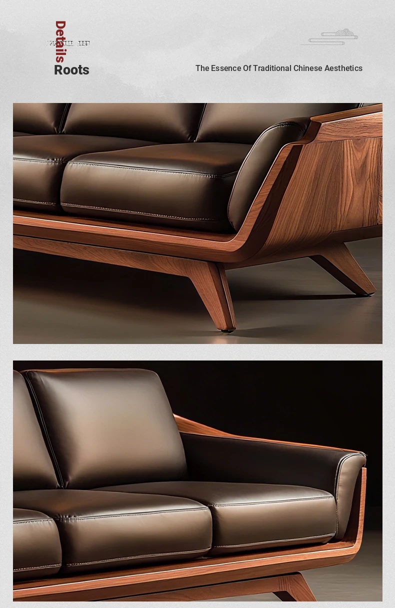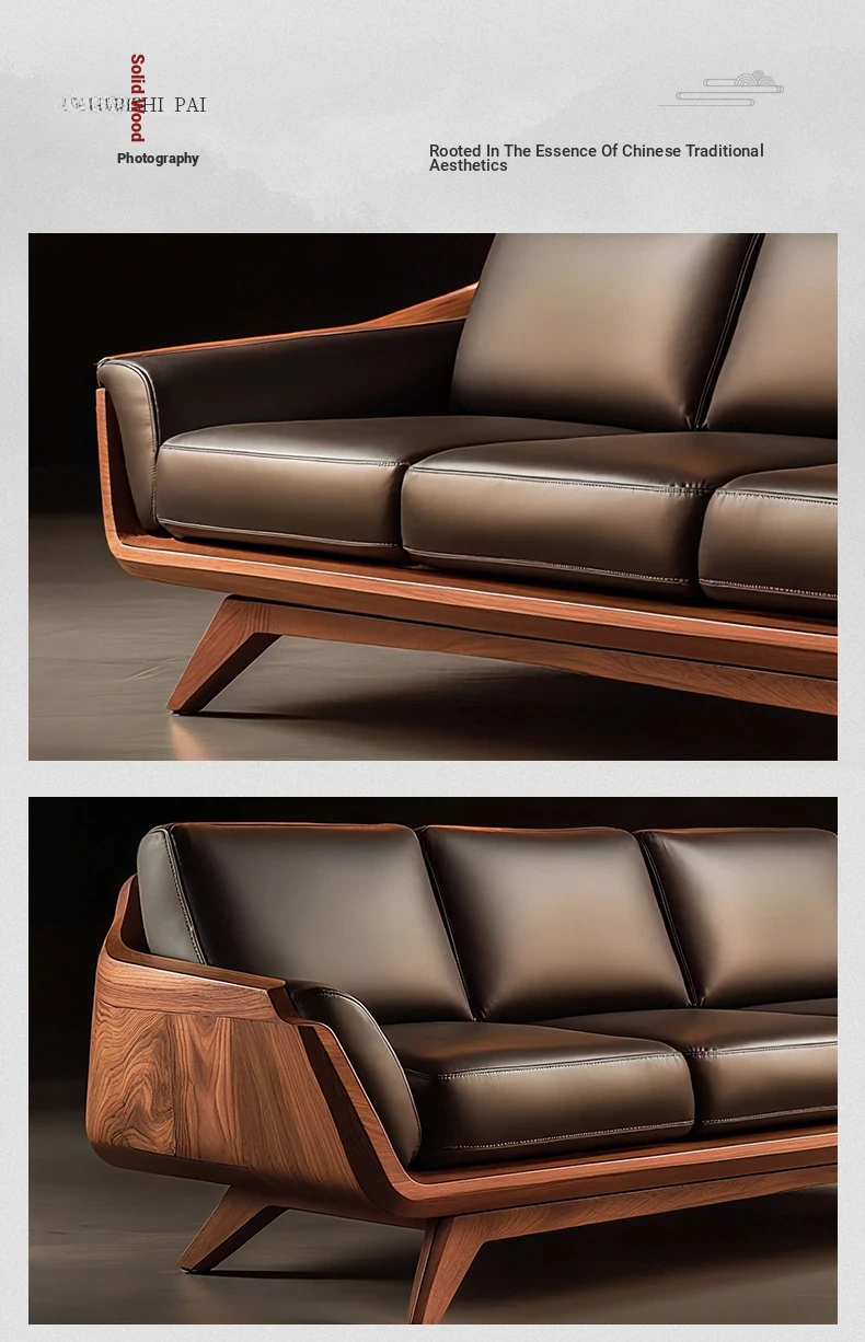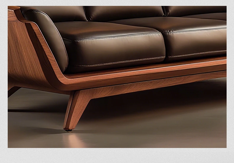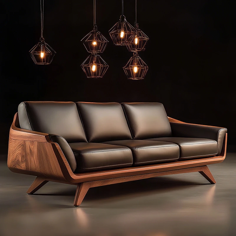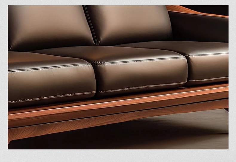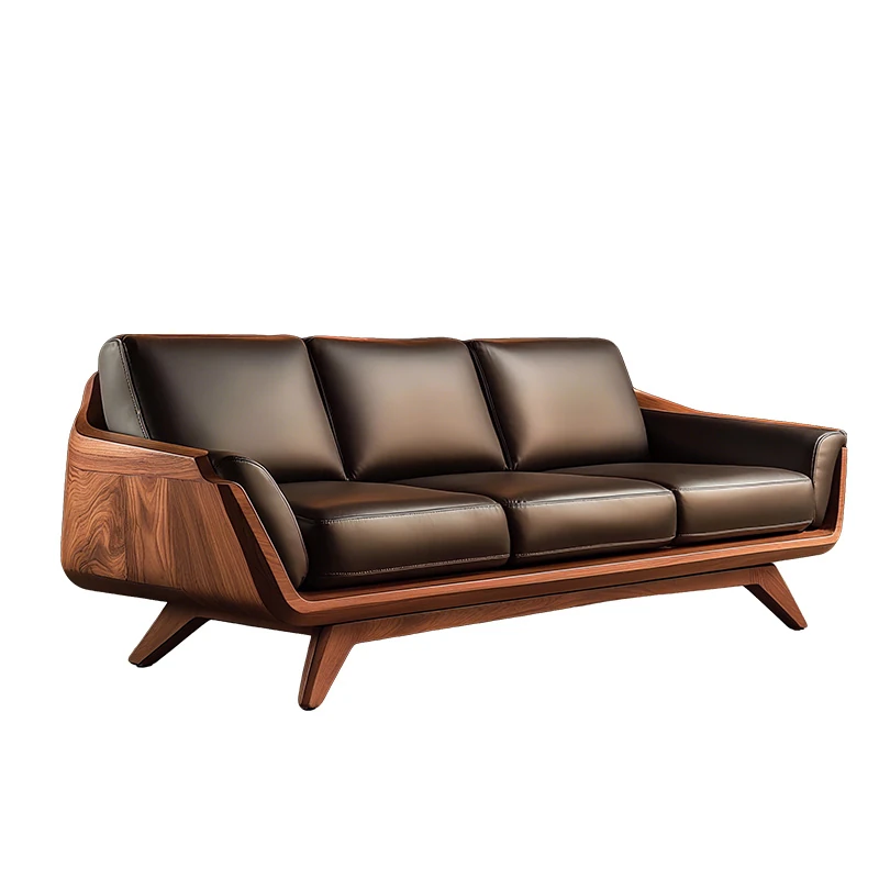 Vintage Solid Wood Sofa - High-End Walnut Leather 3-Seater for Living Room, 2025 New Style Straight Reception Sofa, Perfect for Elegant Spaces