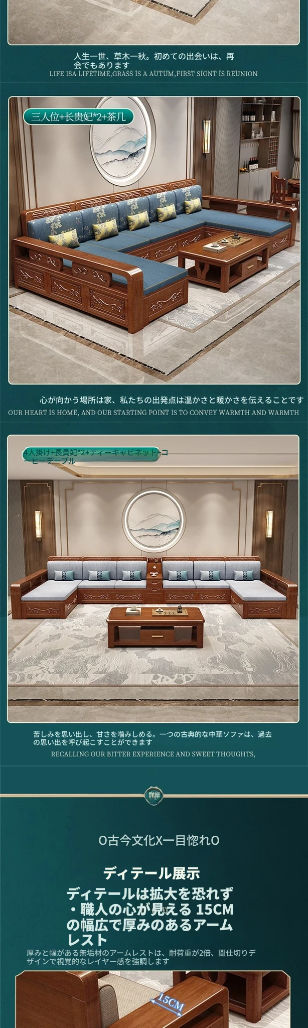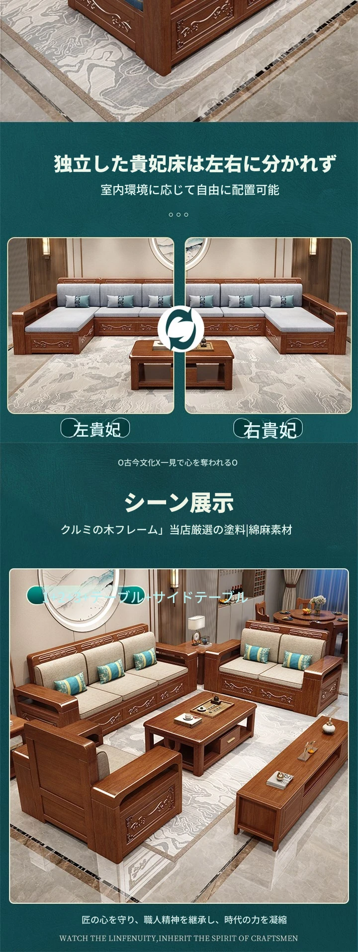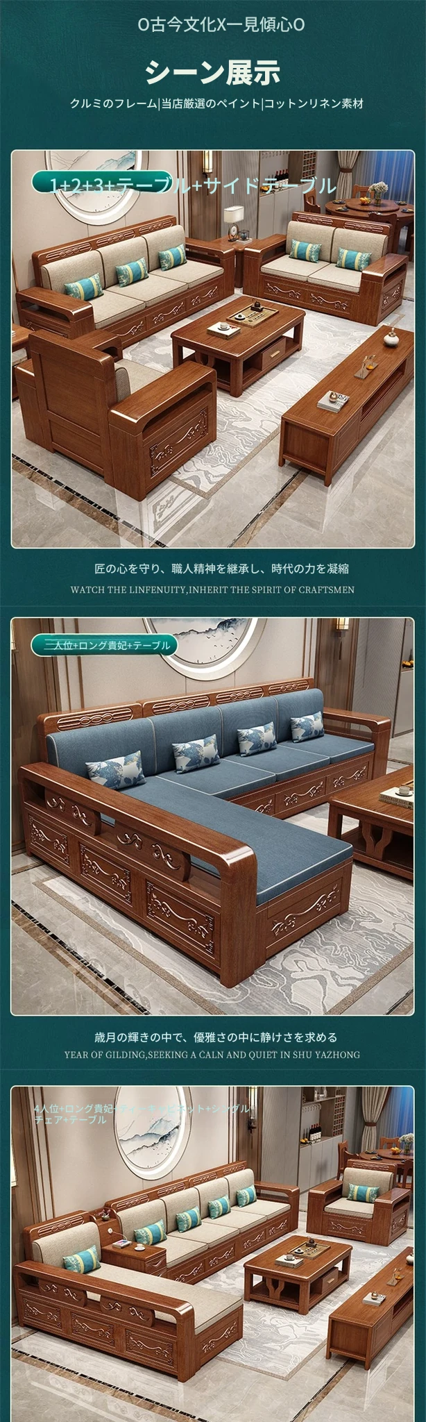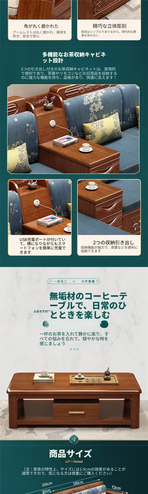 三人掛け+ティーキャビネット+ロング貴妃+コーヒーテーブル+単位