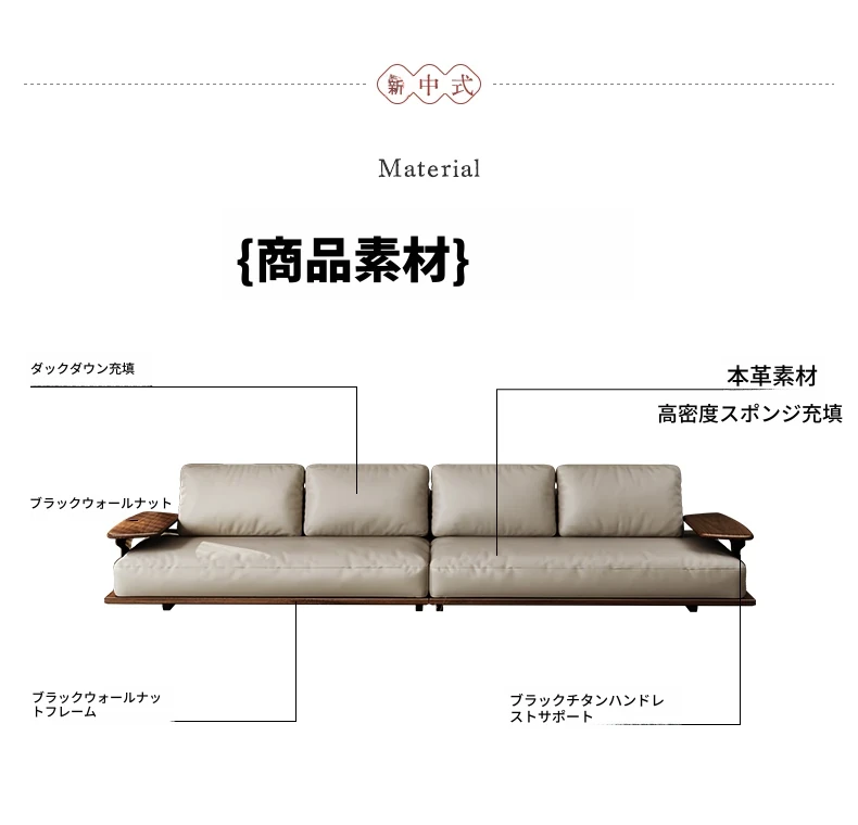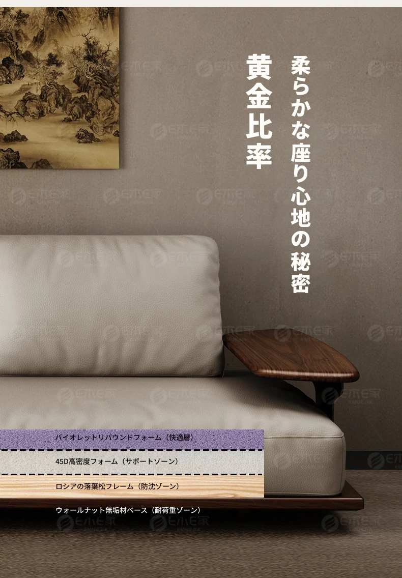 【スタンダード版3.45M大五人用】高品質エコ本革+FASグレードのウォールナット+高反発ハニカム通気一体型スポンジ【宋式美学】