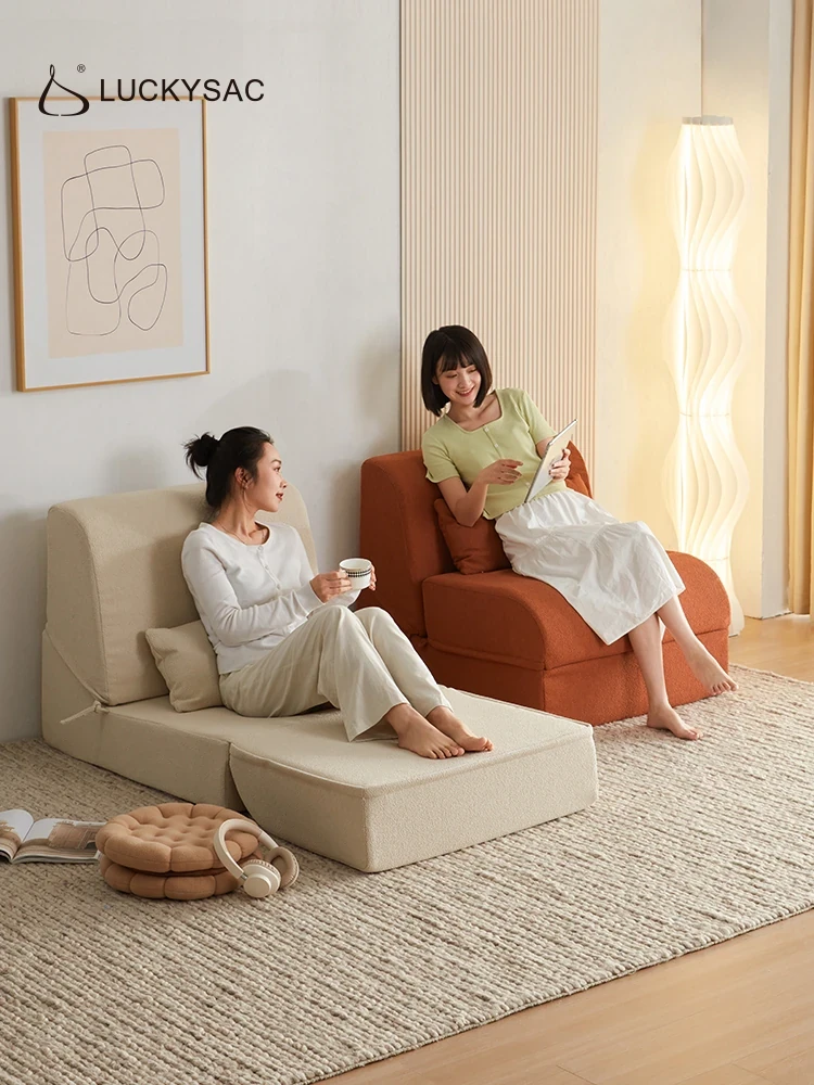 ラッキーサックの楽々ソファ!和風豆腐ブロックスタイルのフロアソファ、リビングに最適。寝転んでも快適な一人用・二人用のコンパクトソファで、心地よいひとときをお楽しみください!