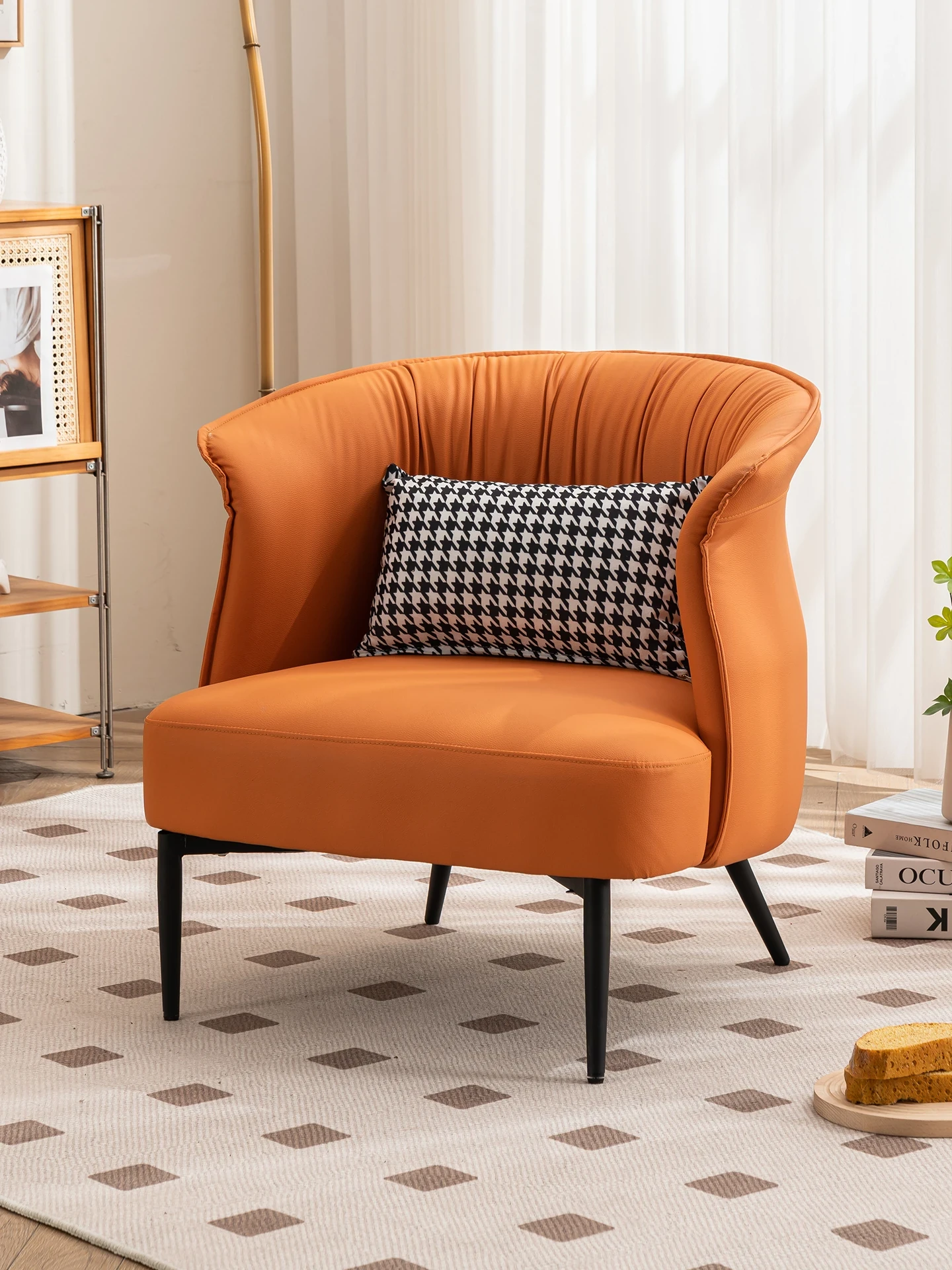 現代的レトロ風デザインの一人掛けソファ - ホテルや民宿、カフェに最適な接客エリア用リラックスチェア!お洒落で快適な空間を演出し、商談やくつろぎのひとときをお楽しみいただけます。