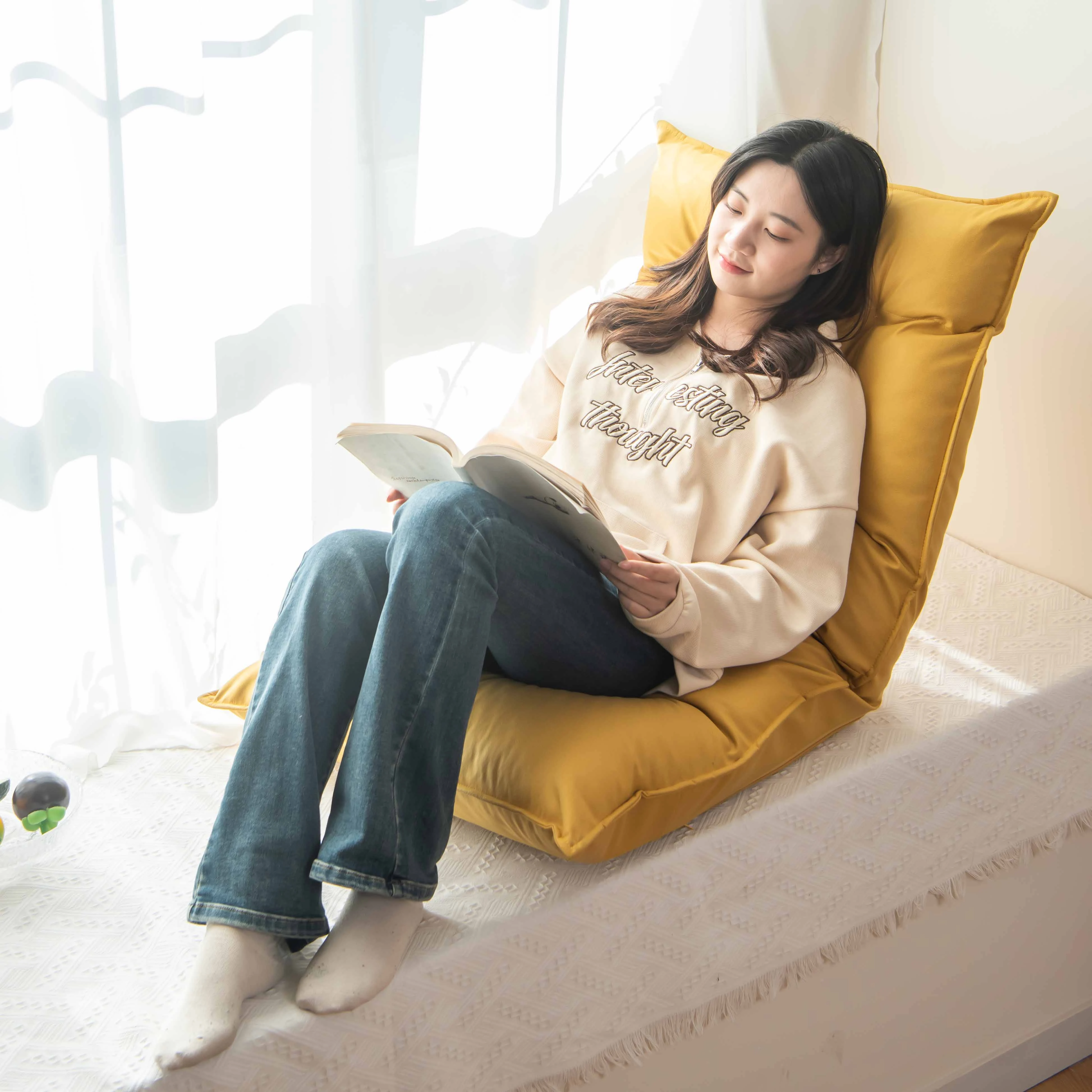 おしゃれで快適!折りたたみ式のリクライニングソファ、シングルサイズのフロアチェア。窓辺や床でリラックスできる、和風の畳スタイル。あなたのお部屋にぴったりのアイテムです!